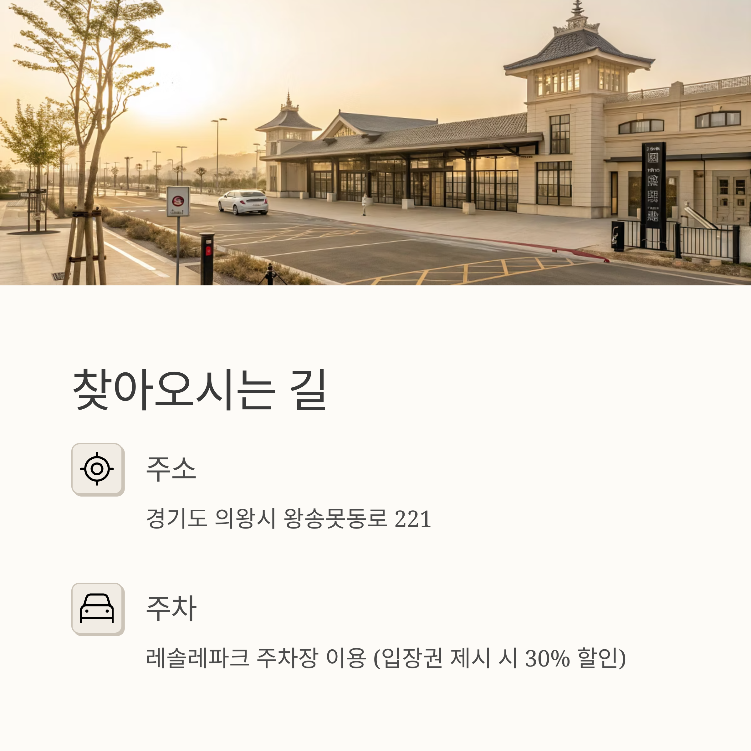- 주소: 경기도 의왕시 왕송못동로 221