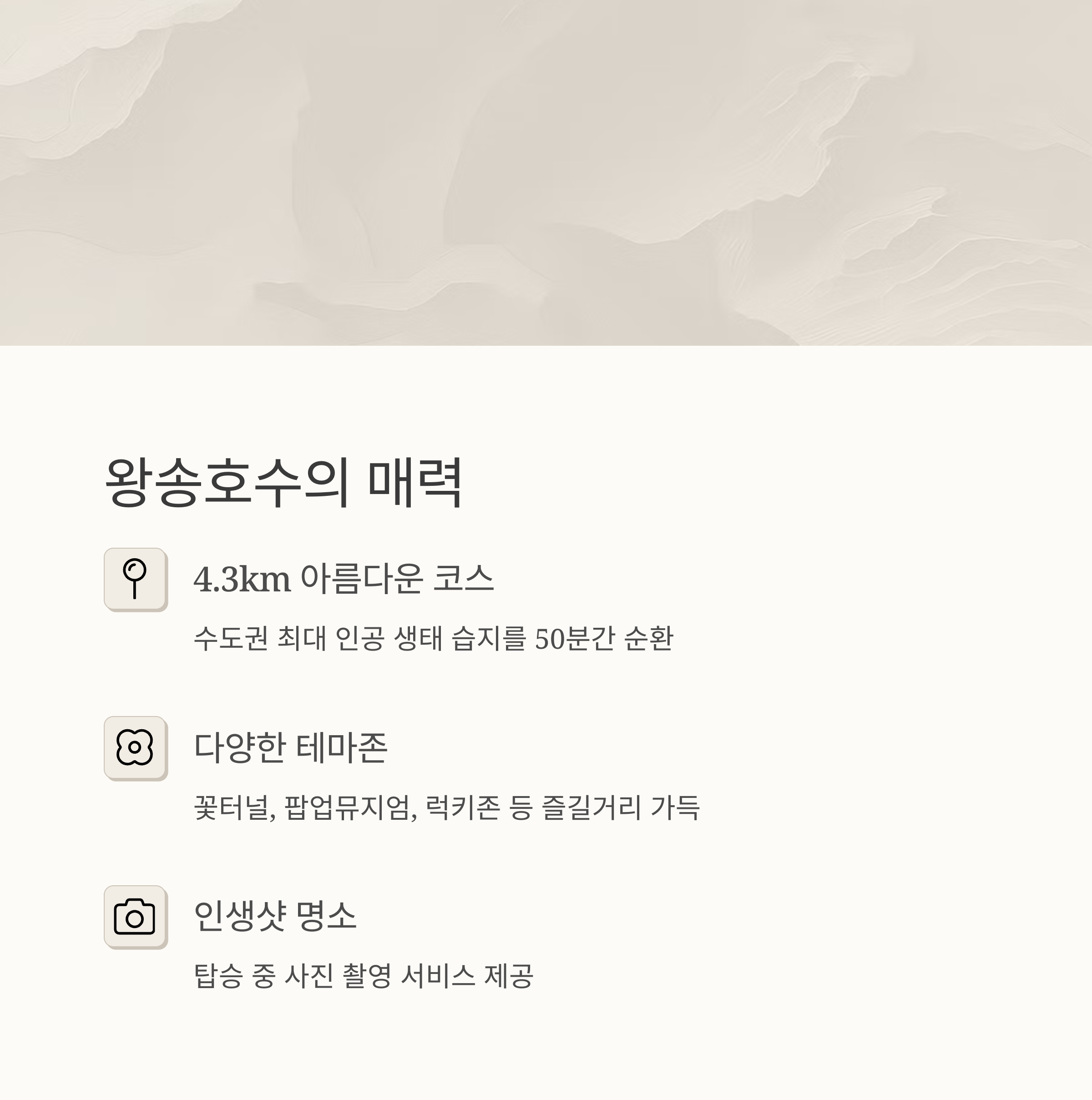 - 자연 경관: 수도권 최대 인공 생태 습지인 왕송호수의 아름다운 풍경을 감상할 수 있습니다.(triple.guide)