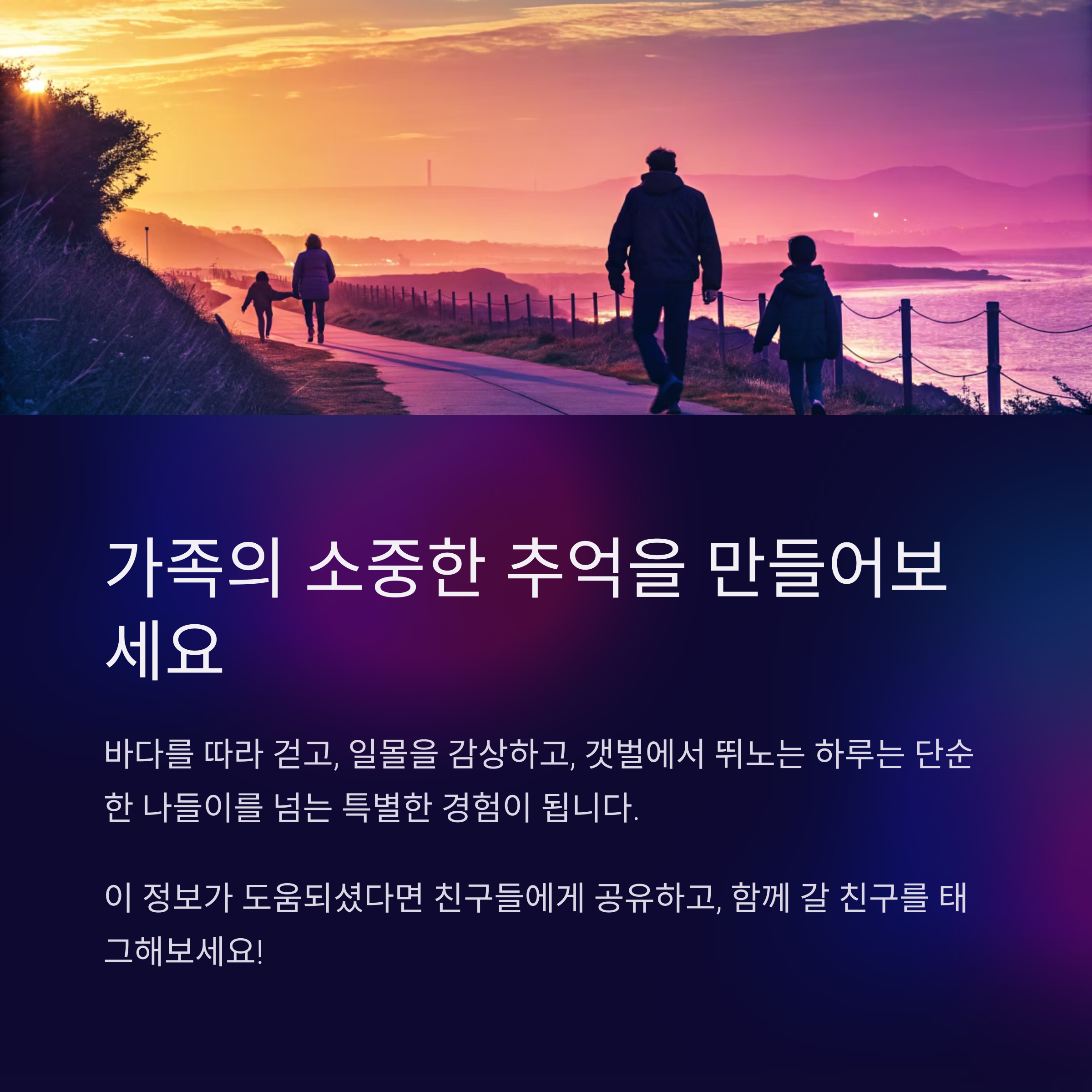 단순한 나들이를 넘는 가족의 소중한 추억이 됩니다