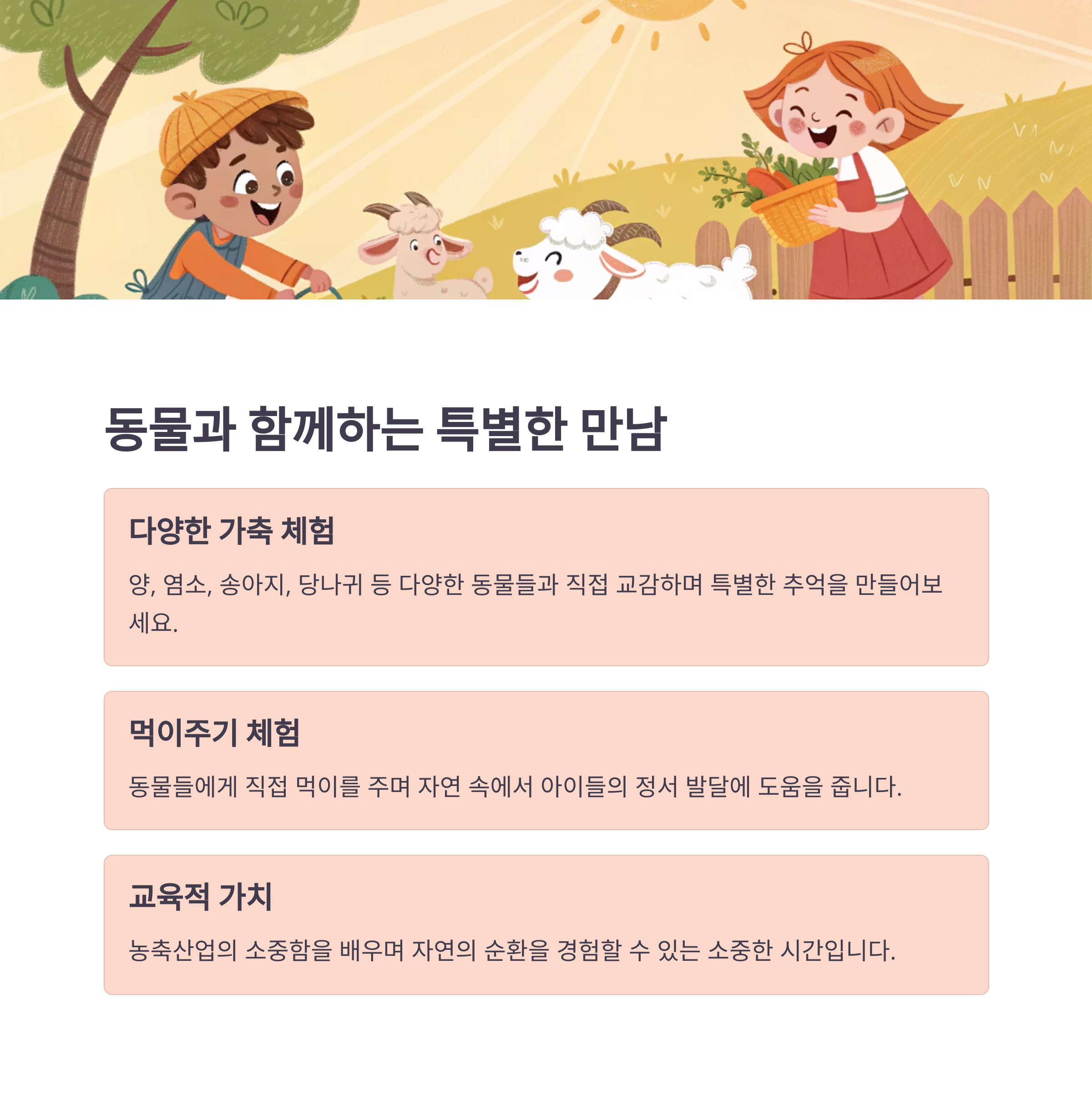 양, 염소, 송아지 등과 가까이에서 교감할 수 있어