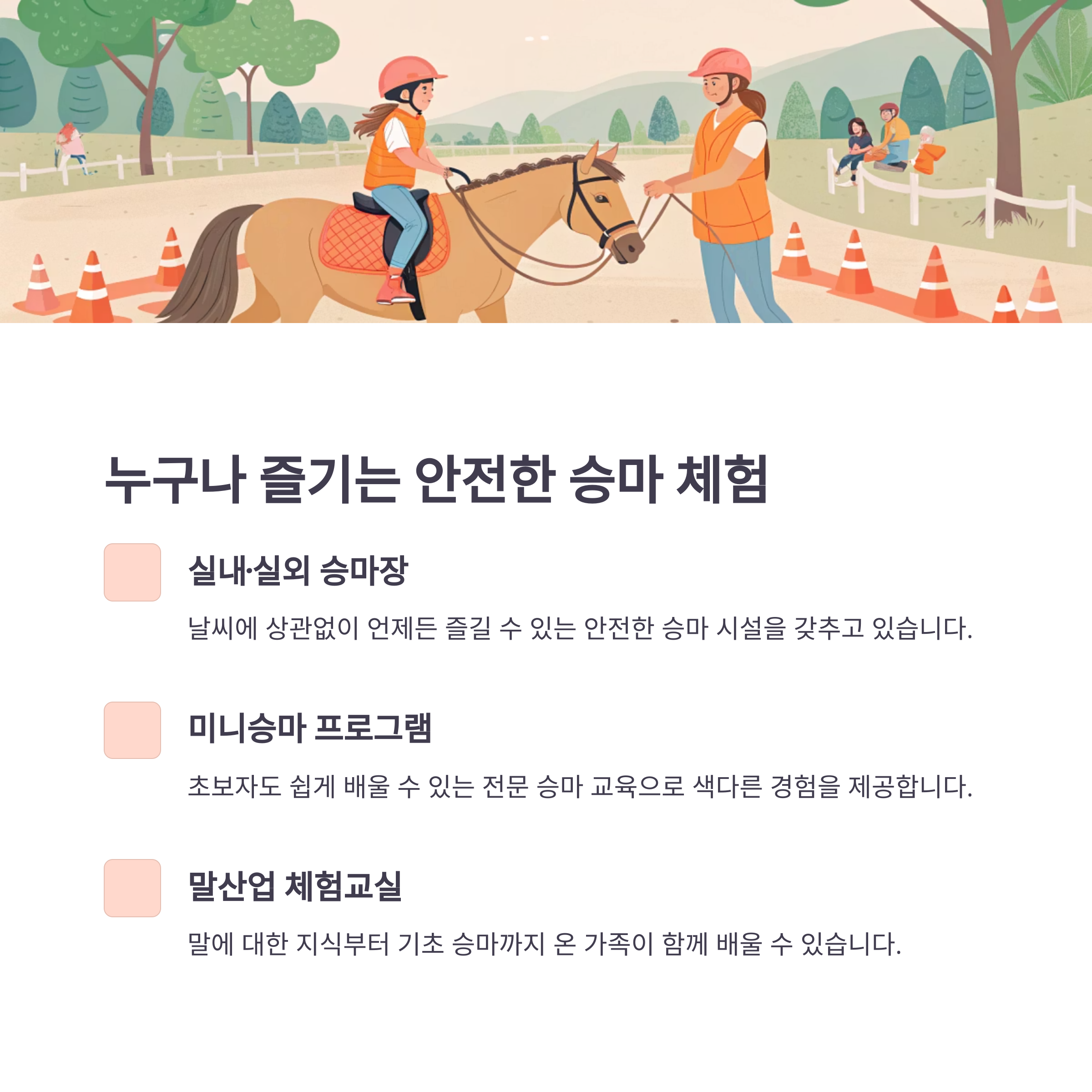 👉 말을 처음 타보는 분들도 안심하고 도전할 수 있어요