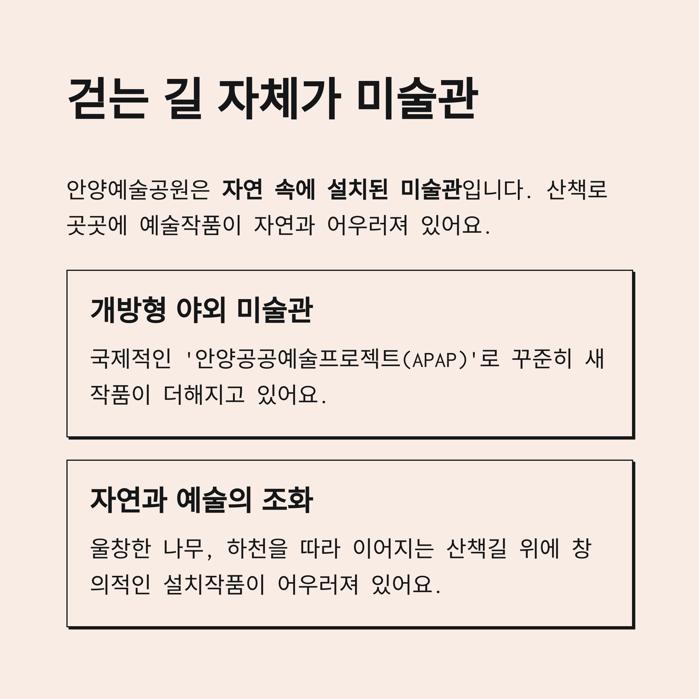 안양예술공원은 미술관을 걷는 것이 아니라,