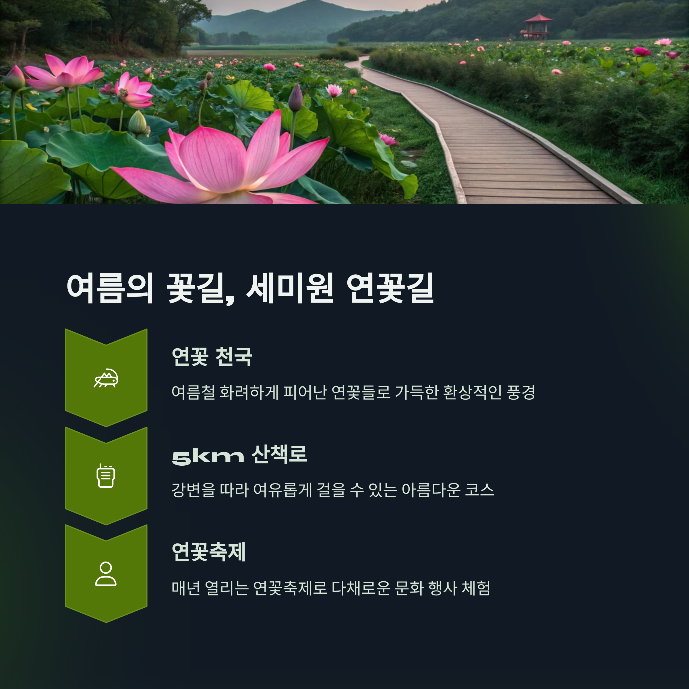 특히 여름철이면 수천 송이의 연꽃이 만개해 환상적인 산책로를 선사합니다.