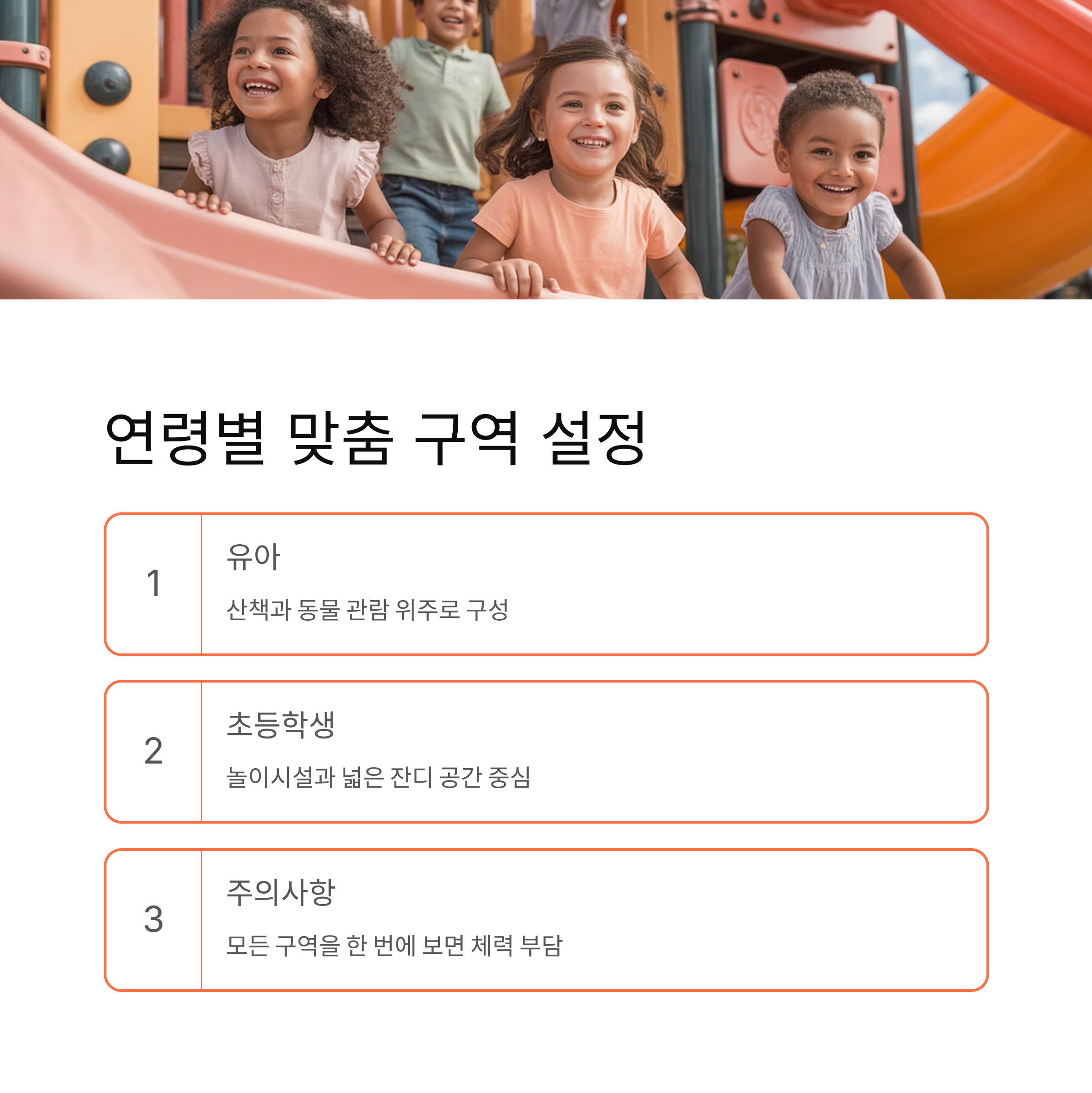어린이대공원은 유아부터 초등학생까지 연령대별로 즐길 수 있는 공간이 다릅니다. 아이가 어리다면 산책과 동물 관람 위주로, 활동적인 연령이라면 놀이시설과 넓은 잔디 공간을 중심으로 일정을 구성하는 것이 좋습니다. 모든 구역을 한 번에 보려는 계획은 체력 부담으로 이어질 수 있습니다.