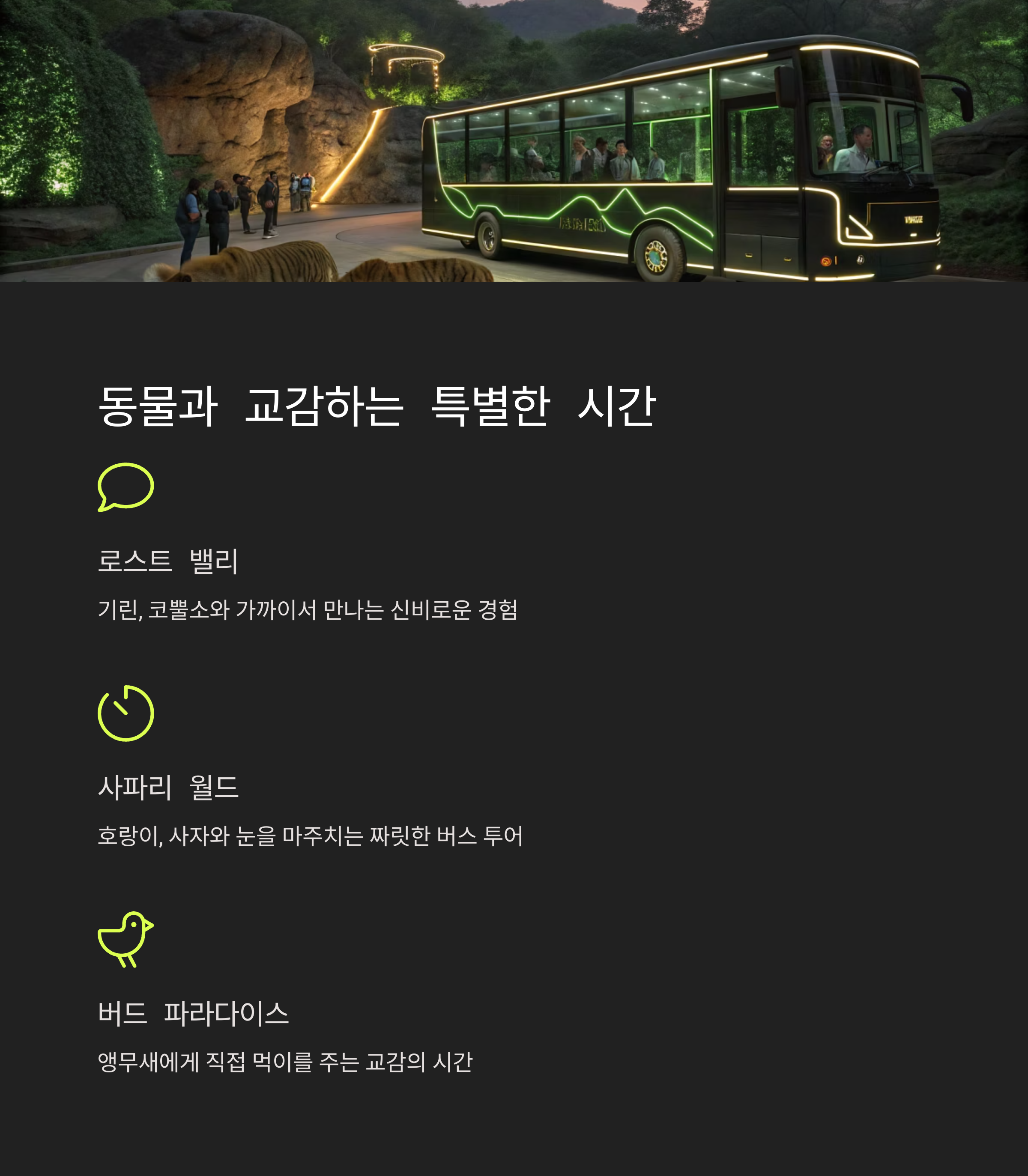 | 사파리 월드 | 호랑이, 사자 버스 탑승 관람 |