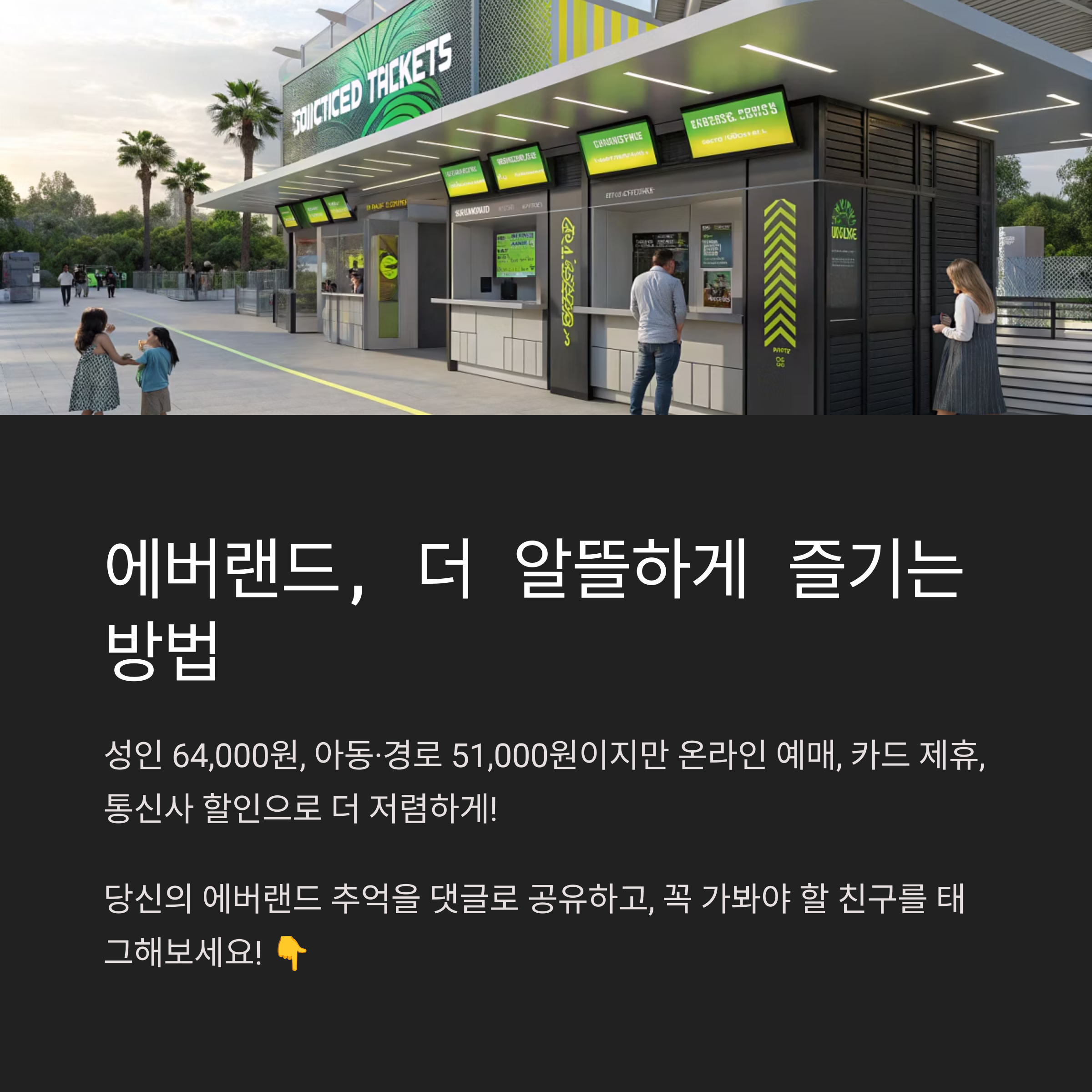 에버랜드 입장권은 온라인 사전 구매 시 다양한 할인 혜택을 받을 수 있습니다.