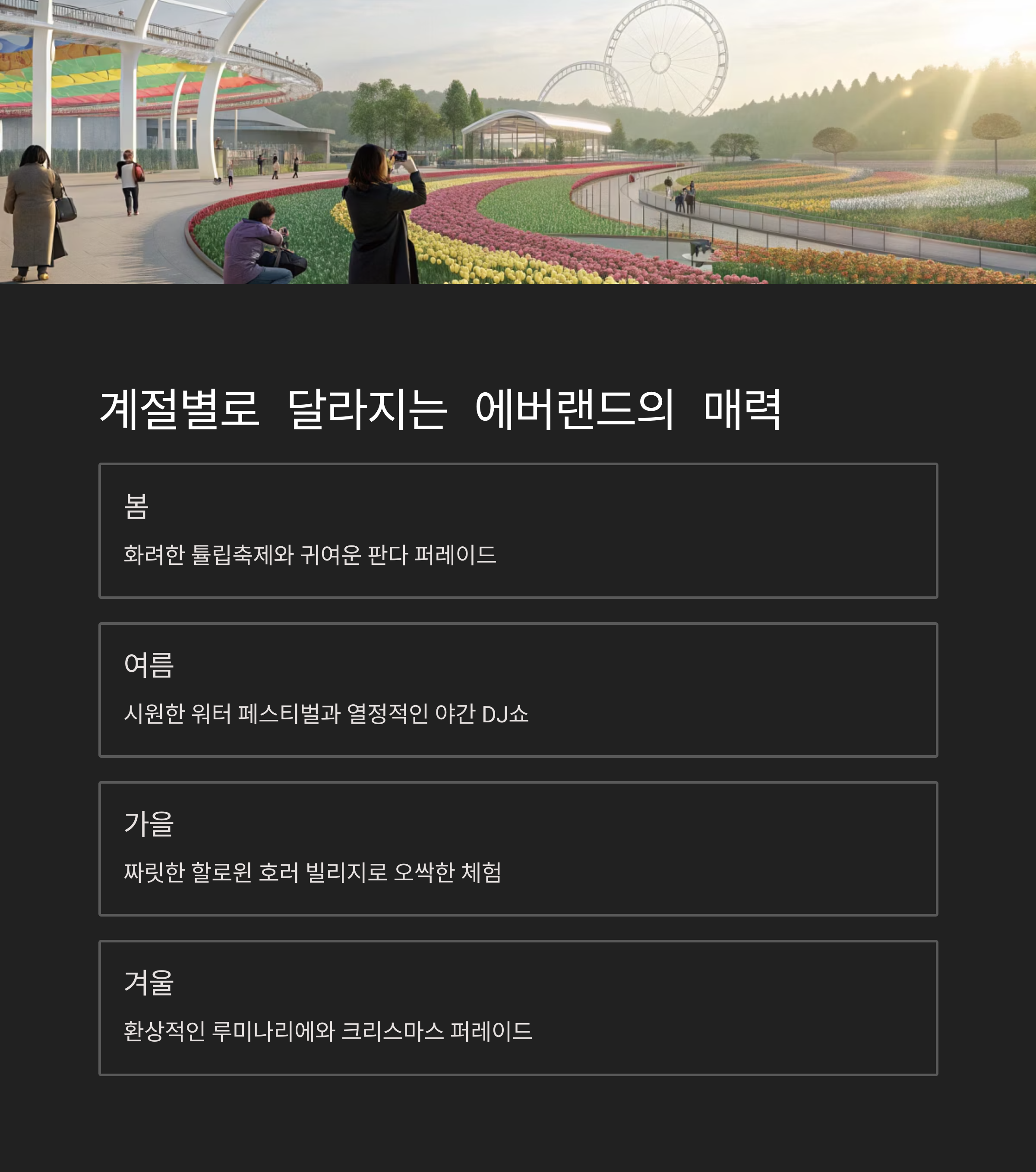 놀이기구 중심의 테마파크를 넘어서 사계절 꽃축제, 동물 사파리,