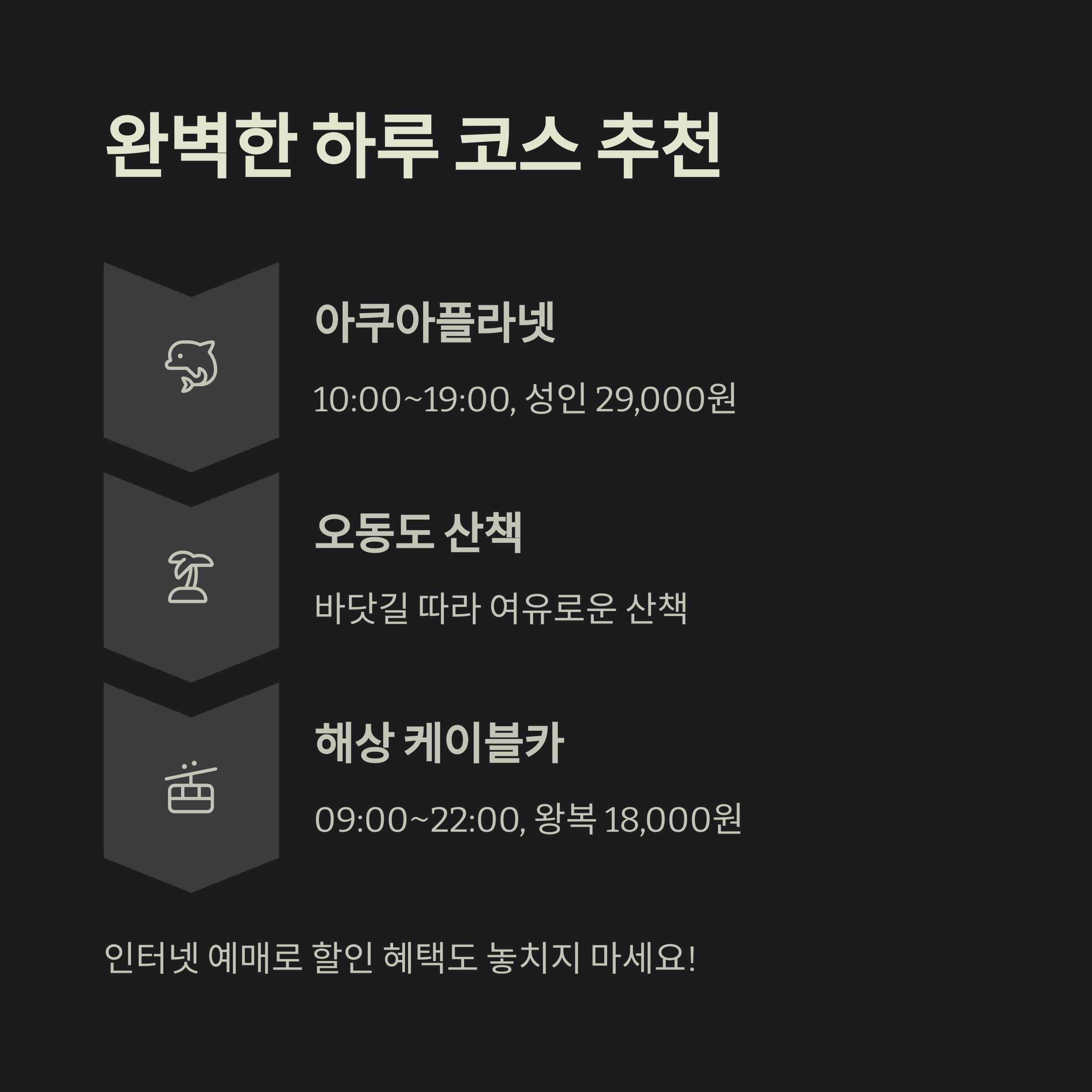| 해상 케이블카 | 09:00~22:00 | 왕복 18,000원 |