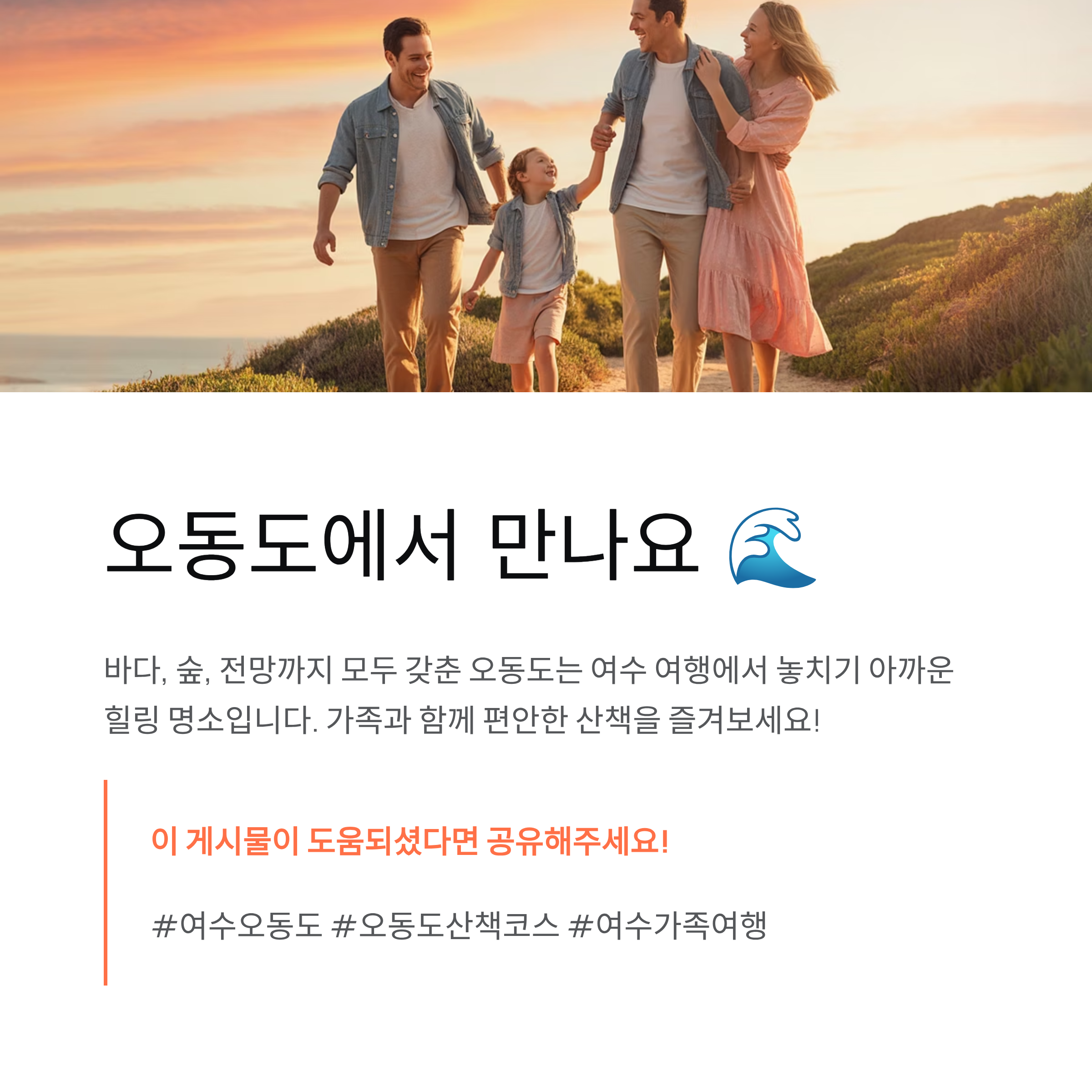 여수 오동도는 바다와 숲이 자연스럽게 어우러진 산책 명소로, 가족끼리 가볍게 걷기 좋은 길이 잘 정비되어 있습니다. 특히 동백나무길과 바람이 시원하게 부는 해안 산책로까지 이어져 있어 어디를 걷더라도 풍경이 아름답고, 아이들과 함께 걸어도 부담이 적습니다. 오늘은 오동도의 대표 산책 코스와 가족 여행에 어울리는 동선을 중심으로 안내해드릴게요.