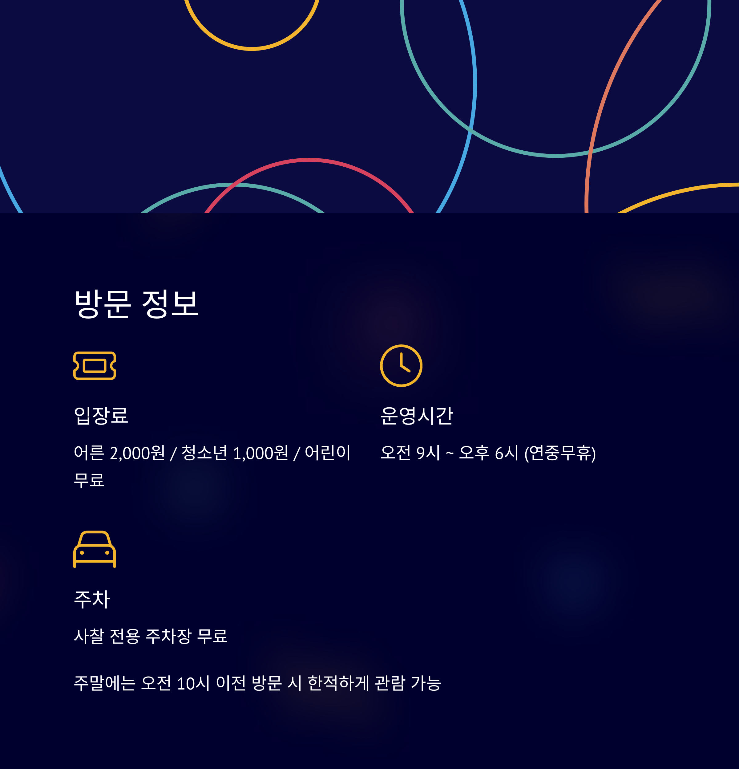 | 입장료 | 어른 2,000원 / 청소년 1,000원 / 어린이 무료 |