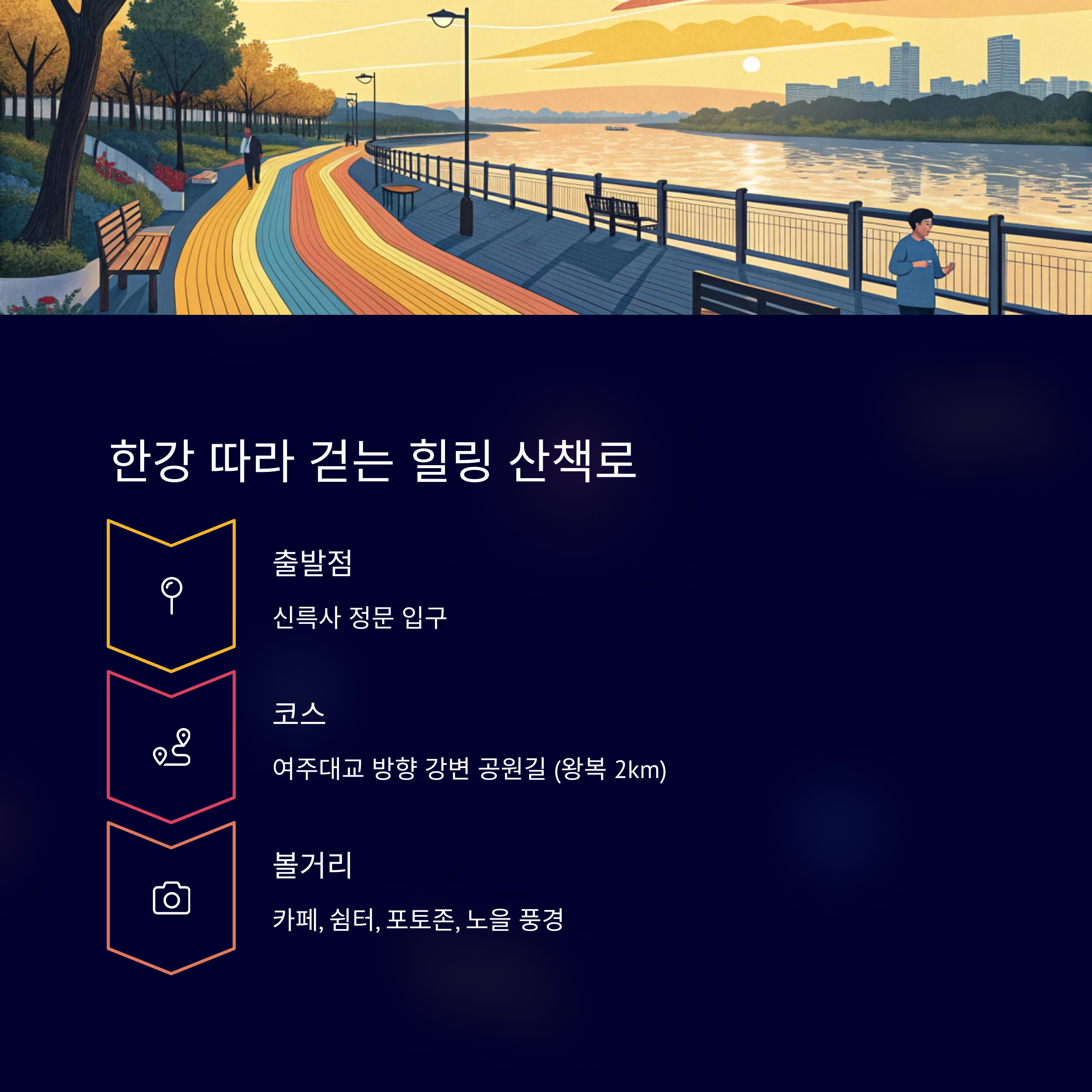 - 산책 방향: 여주대교 방향 강변 따라 조성된 공원길