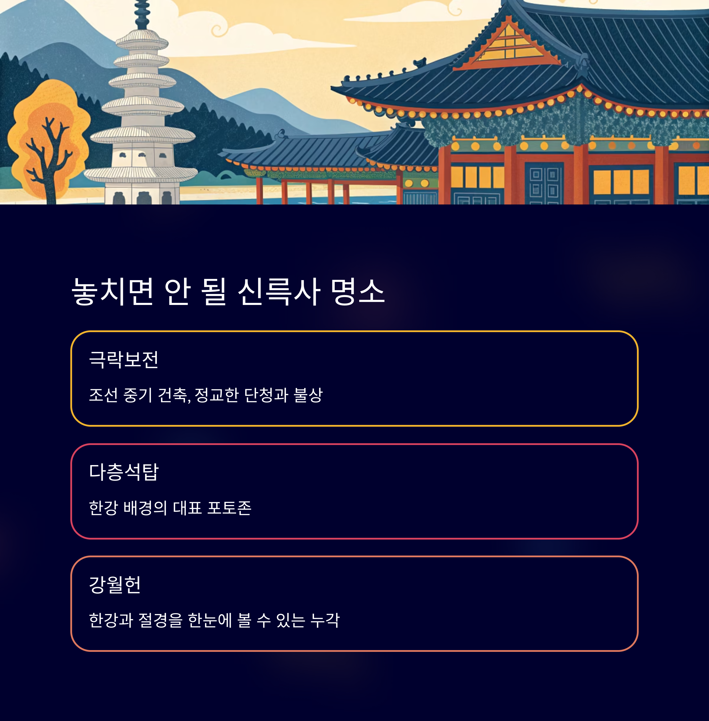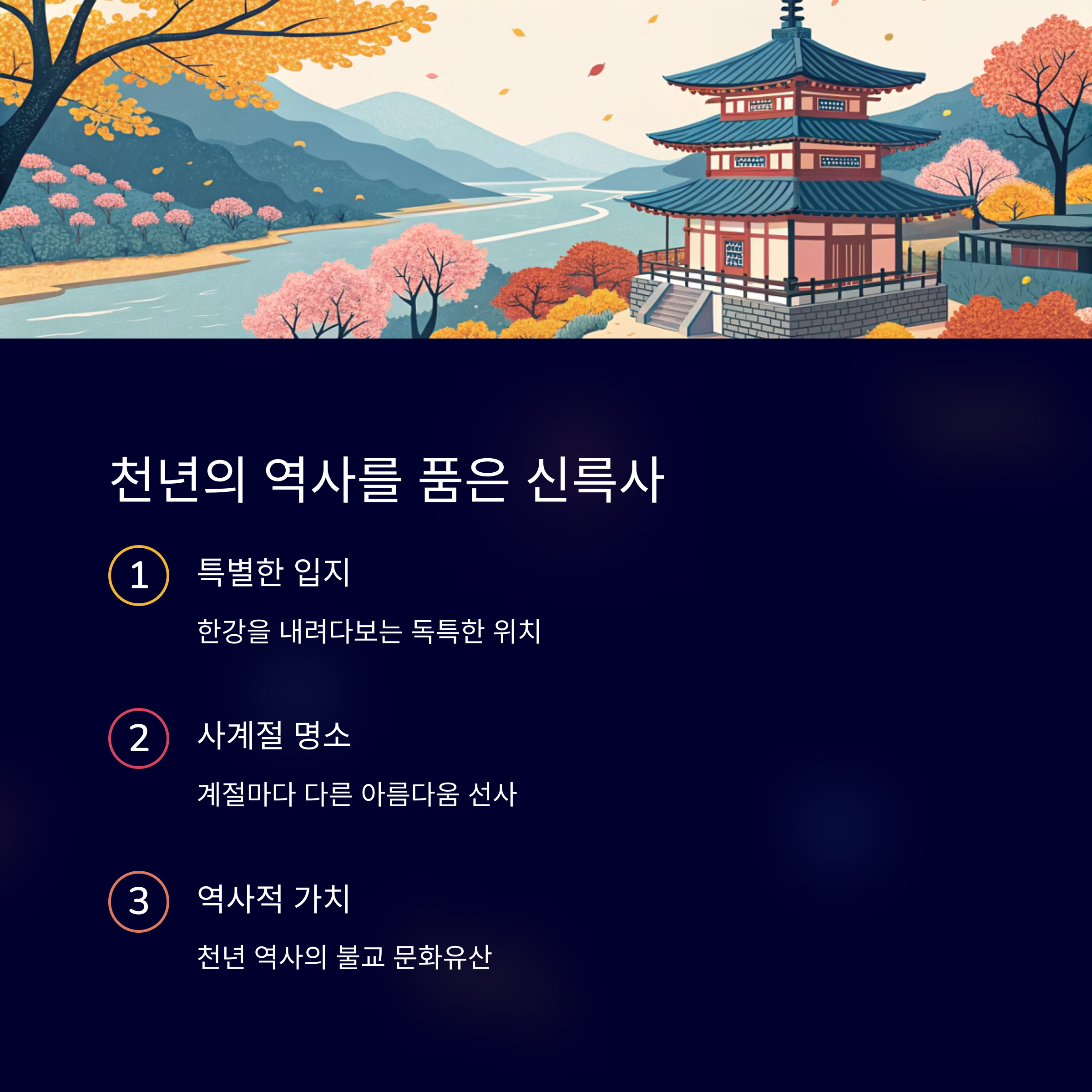 천년 고찰의 고요함과 한강이 흐르는 풍경을 함께 즐기고 싶다면 이곳이 정답입니다