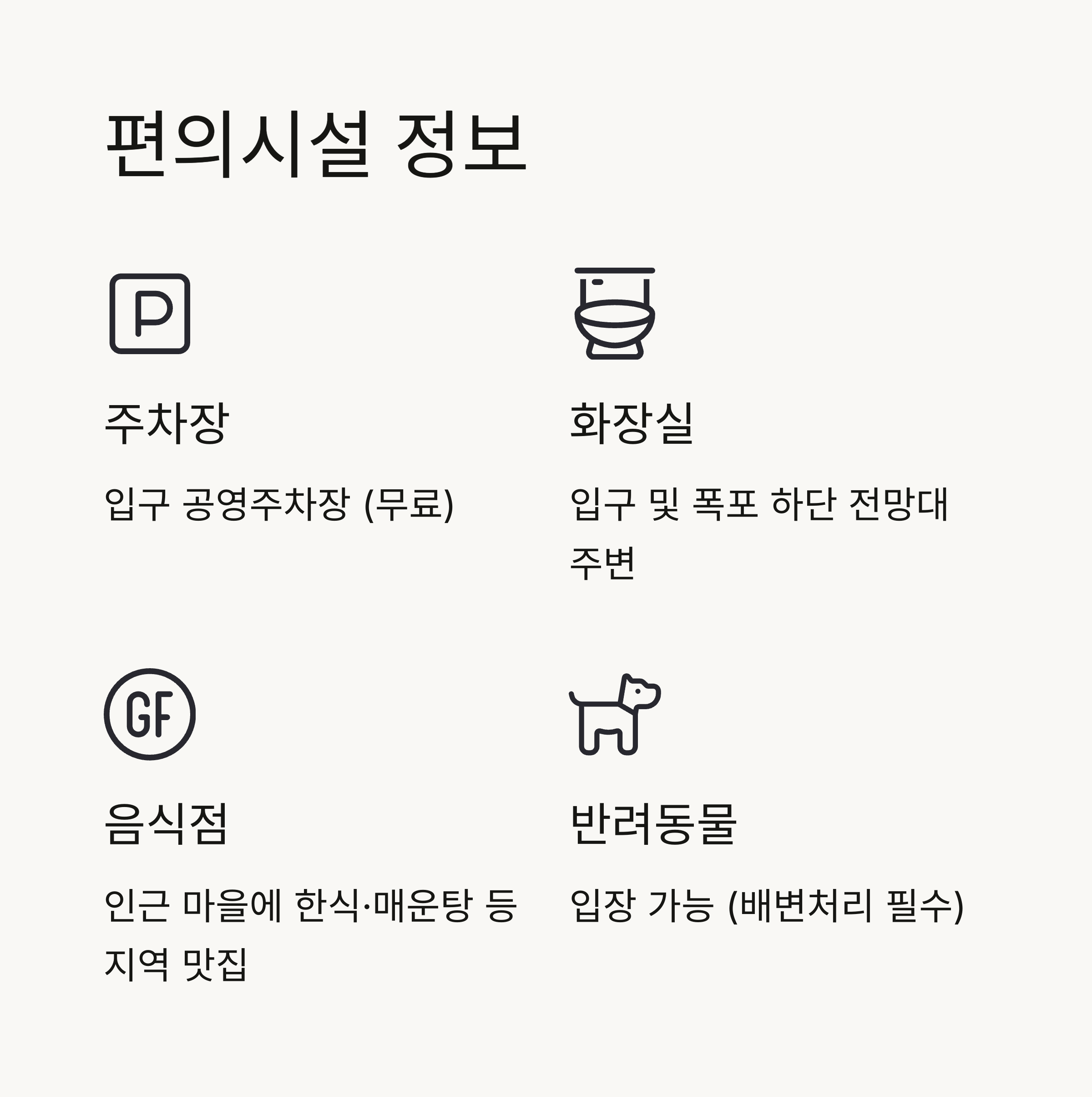 | 화장실 | 입구 및 폭포 하단 전망대 주변 |