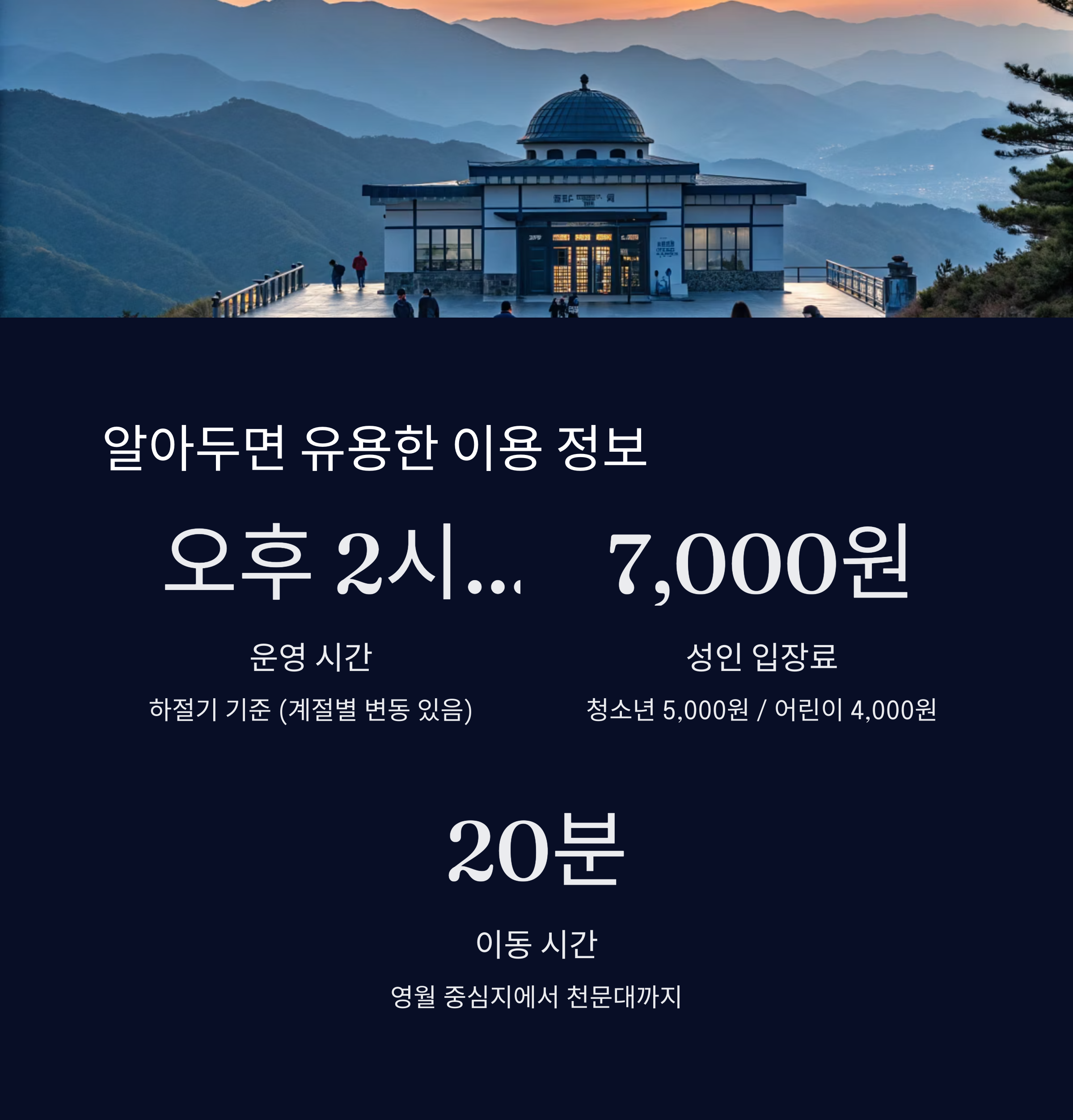 | 위치 | 강원도 영월군 영월읍 천문대길 397 |