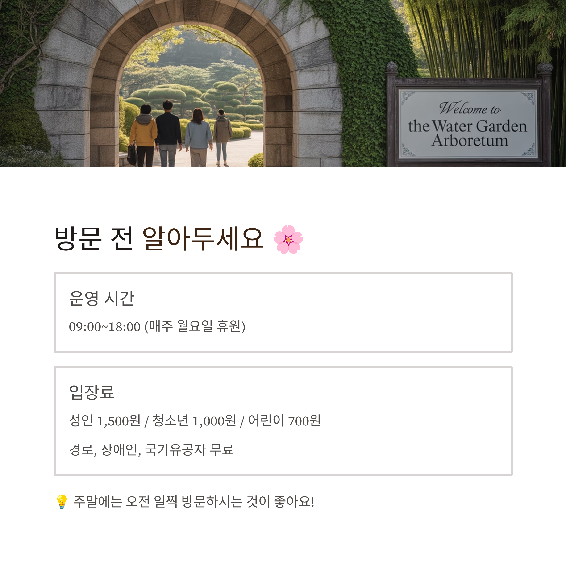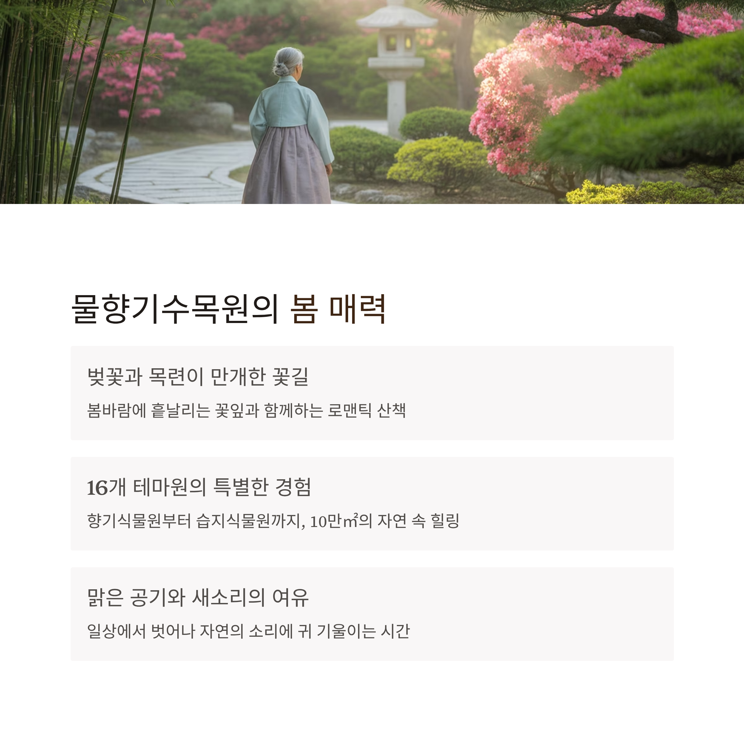이번 글에서는 물향기수목원의 봄 풍경, 관람 팁, 주변 즐길 거리를 소개합니다.