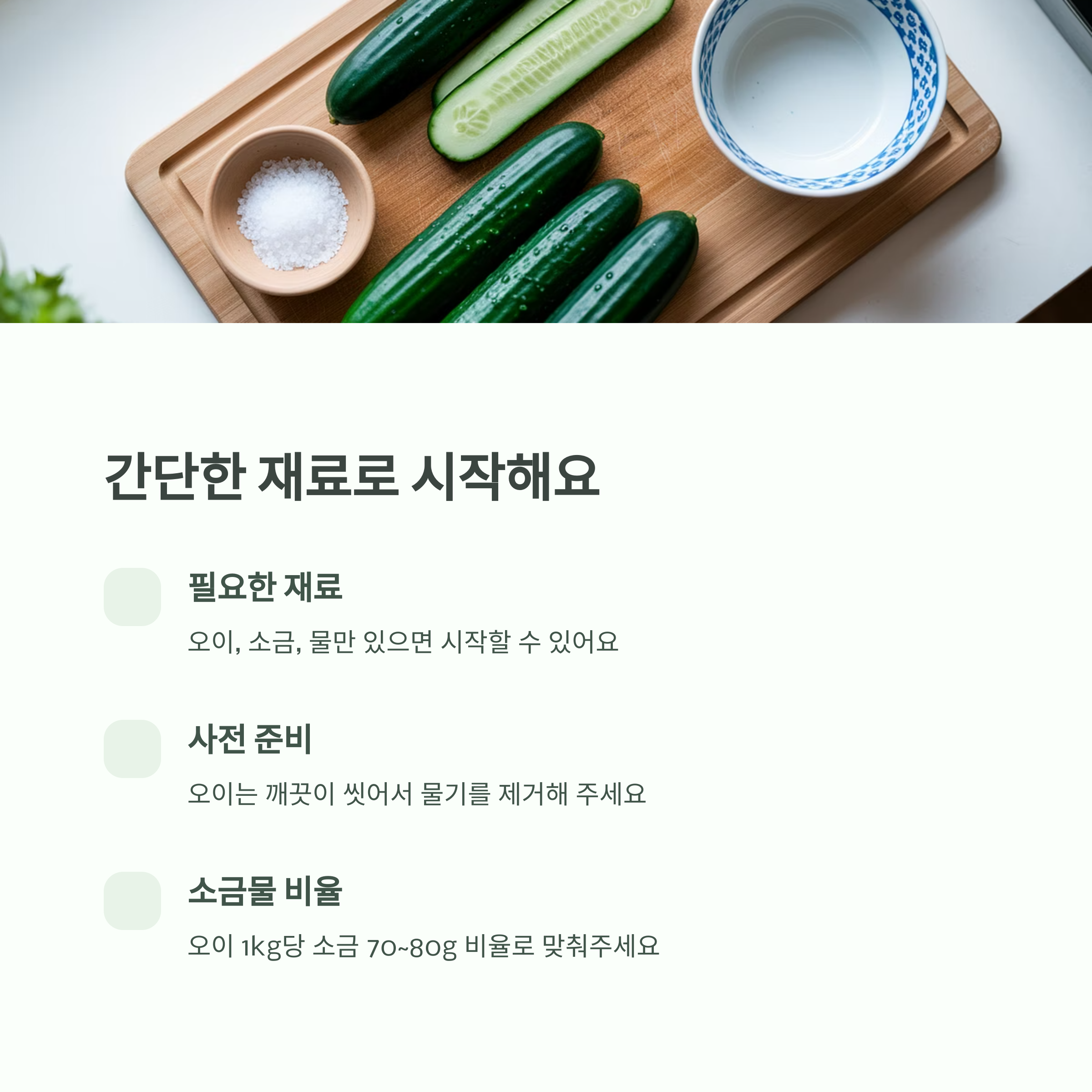 오이지는 오이를 소금물에 절여 만든 장아찌로 여름철 입맛을 돋우는 데 최고의 밑반찬입니다. 시원하고 아삭한 식감이 특징이며, 식사 중 느끼함을 잡아주고 밥맛을 살려주는 역할을 해요. 하지만 제대로 된 숙성과 손질 없이 만들면 지나치게 짜거나 물러서 실패할 수 있습니다. 오이지의 핵심은 ‘절이는 시간과 염도’인데요, 소금물 농도와 실온 숙성 시간만 잘 맞추면 누구나 실패 없이 만들 수 있는 게 오이지입니다. 주재료인 오이만 신선하다면 반 이상은 성공이라고 할 수 있어요.