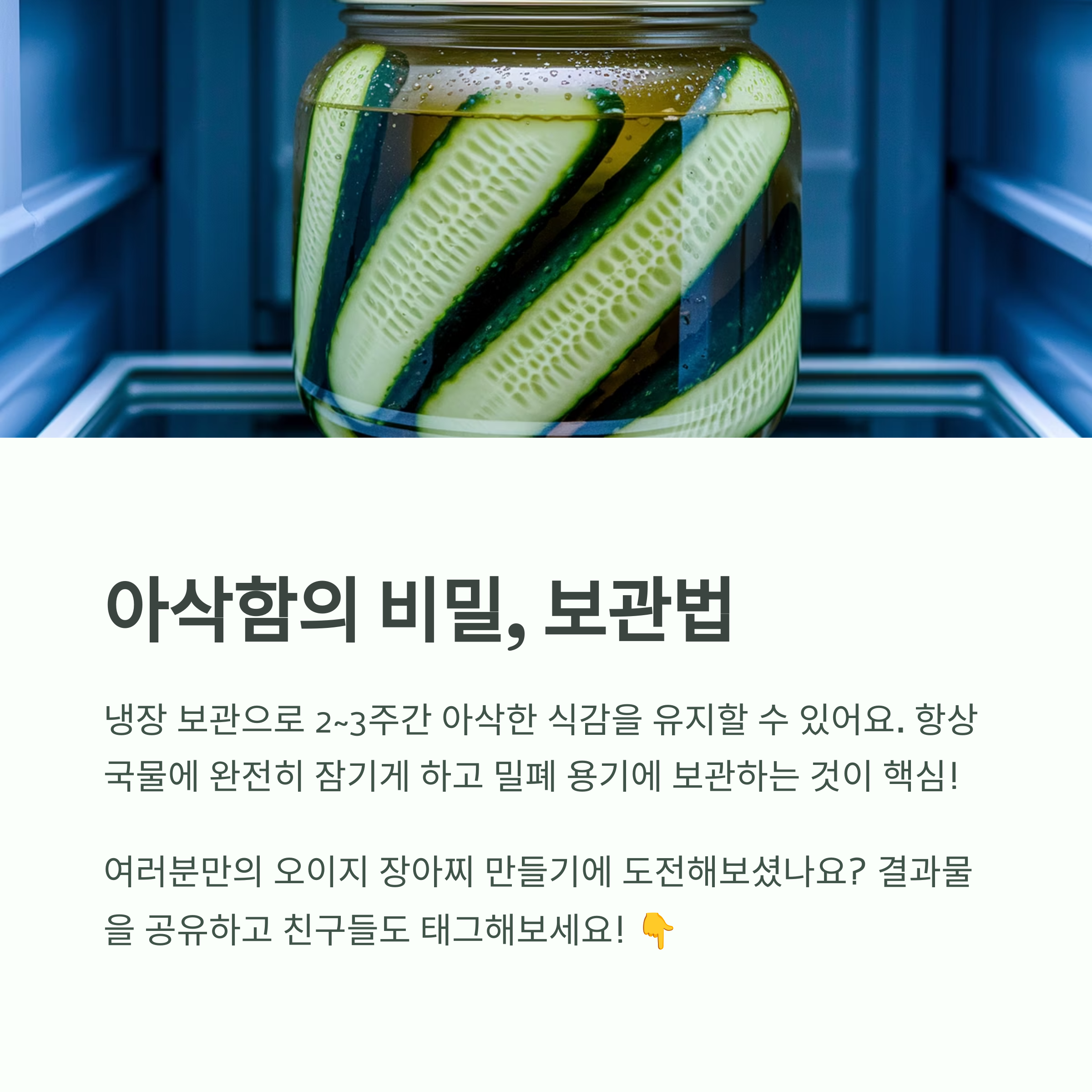 | 오이지 숙성 | 장아찌 조합 | 여름 반찬 |