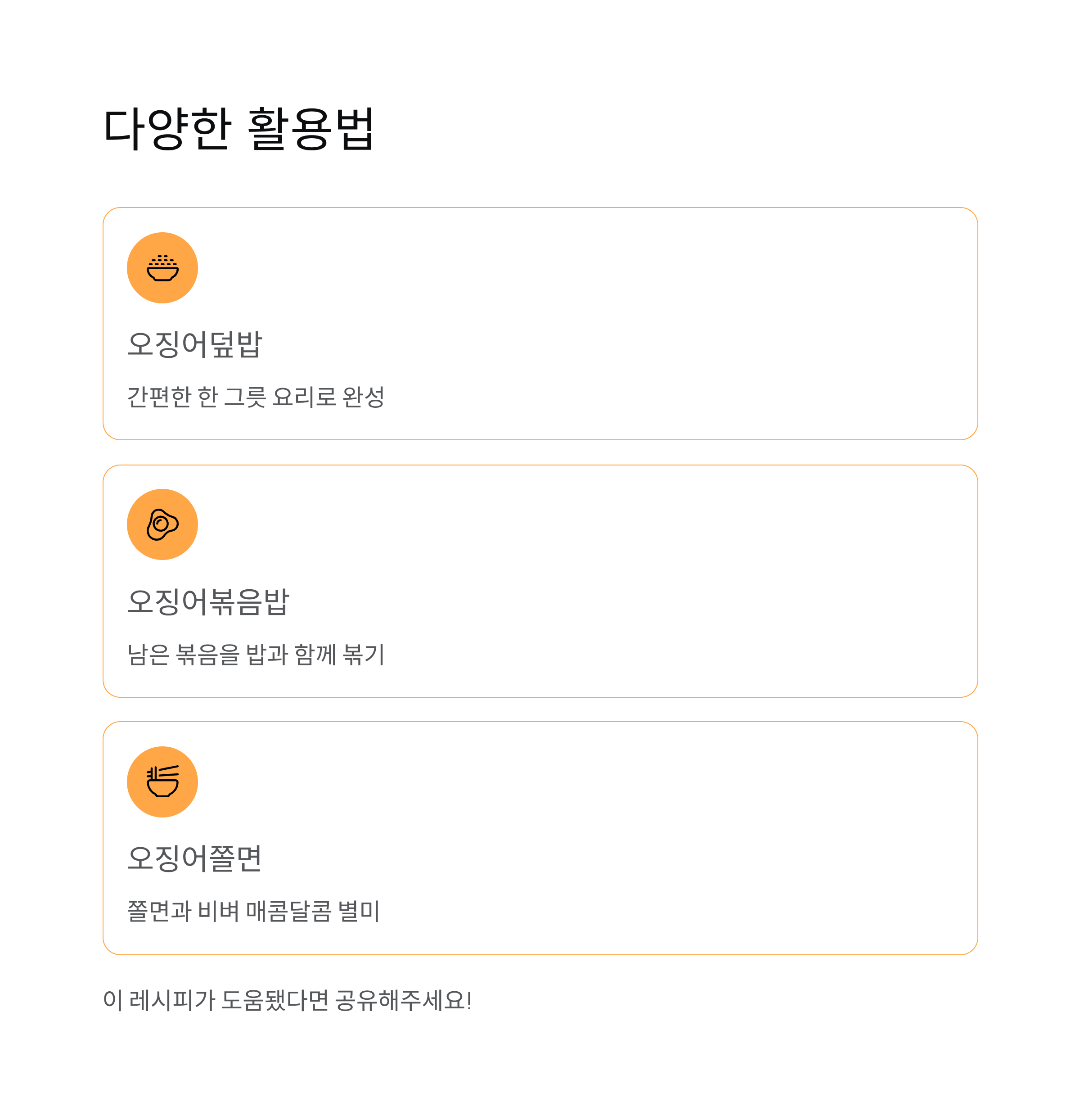 | 오징어덮밥 | 간편한 한 그릇 요리 |