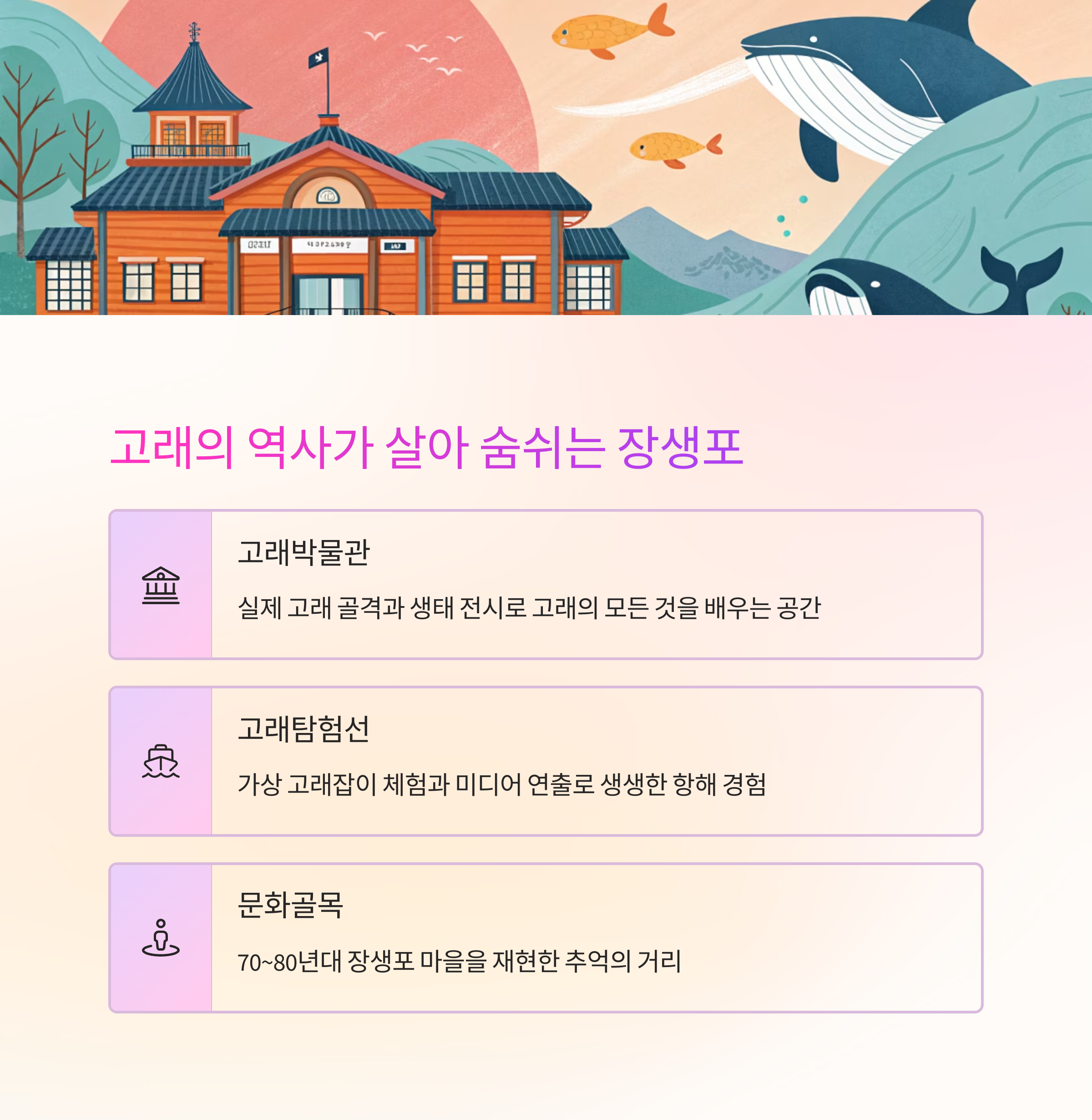 | 고래박물관 | 실제 고래 골격 전시, 고래 생태 설명 |