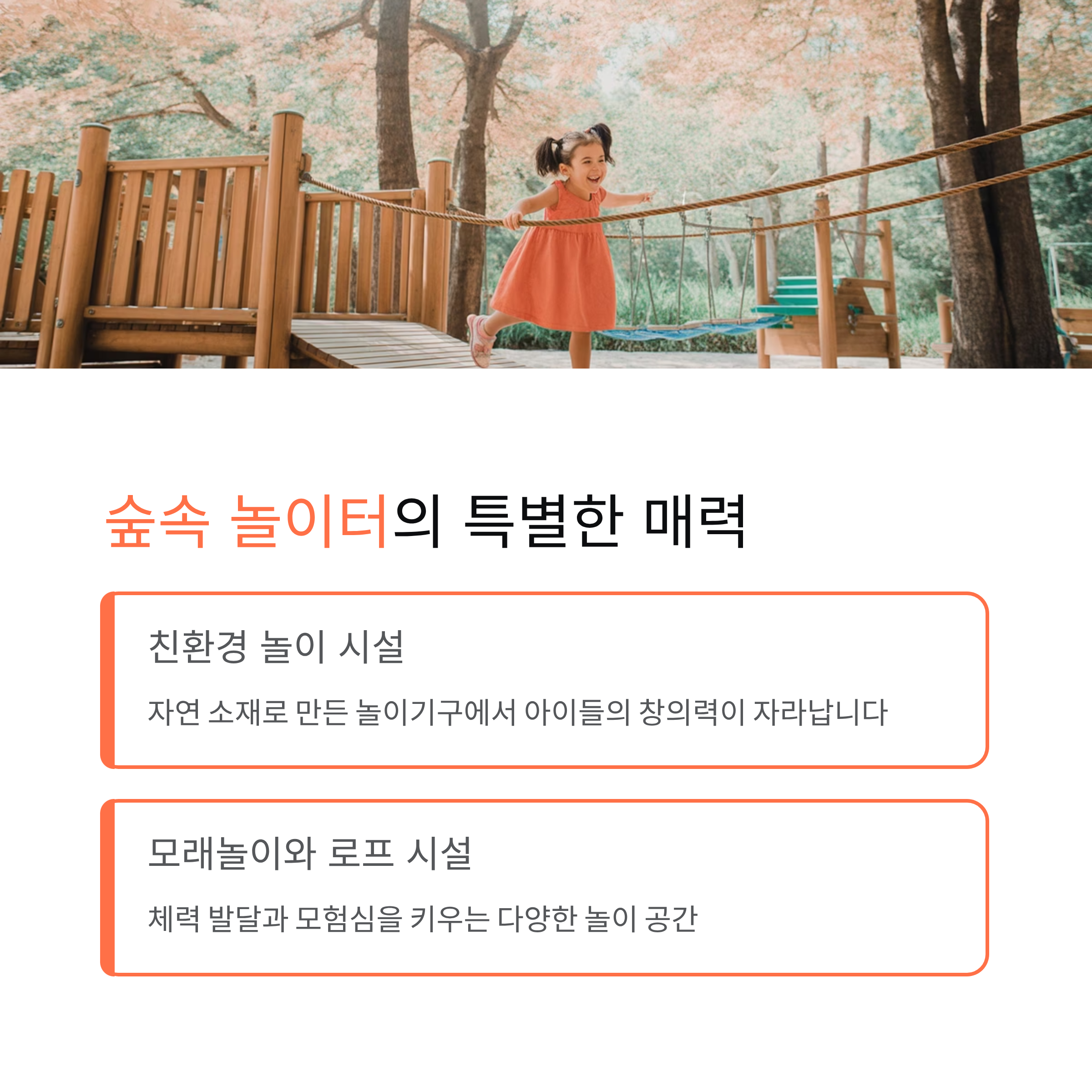 | 숲속 놀이터 | 자연 친화형 놀이 시설 |