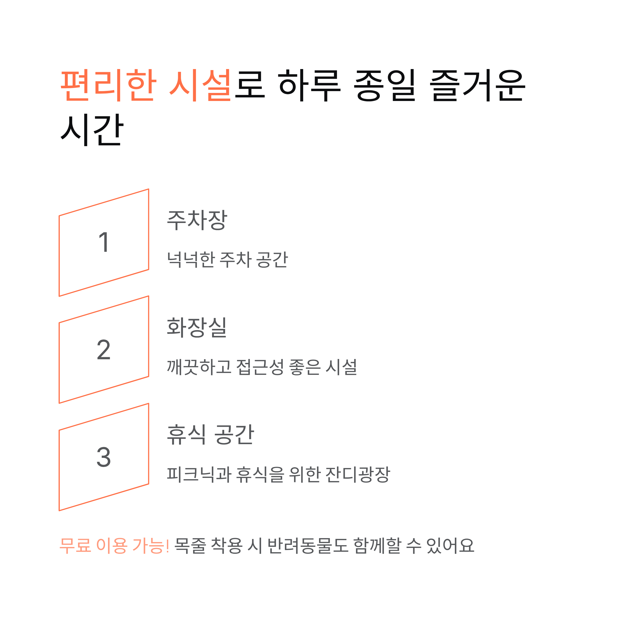| 산책로 | 숲길 산책, 힐링 코스 |