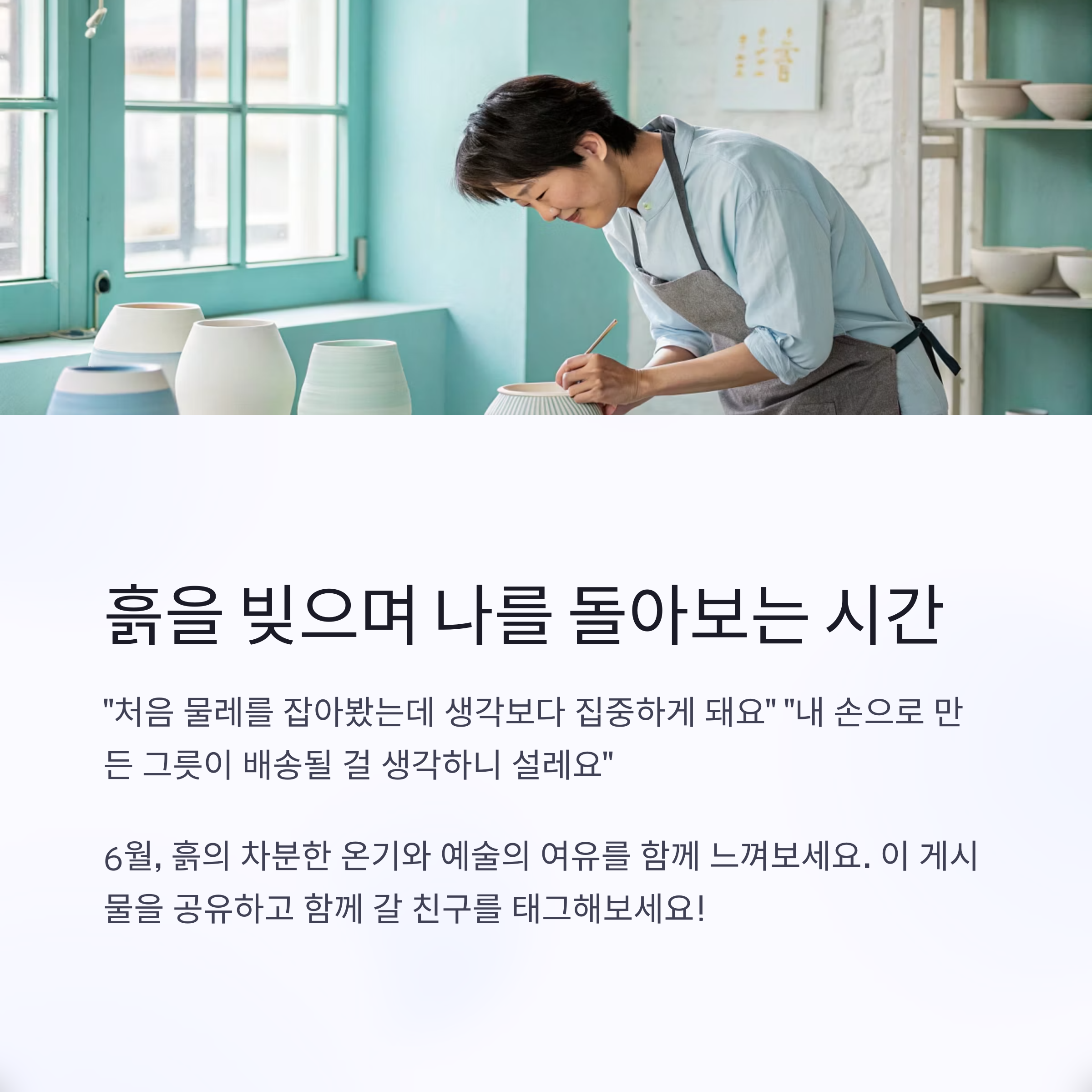 6월, 흙의 차분한 온기와 예술의 여유를 함께 느껴보세요.