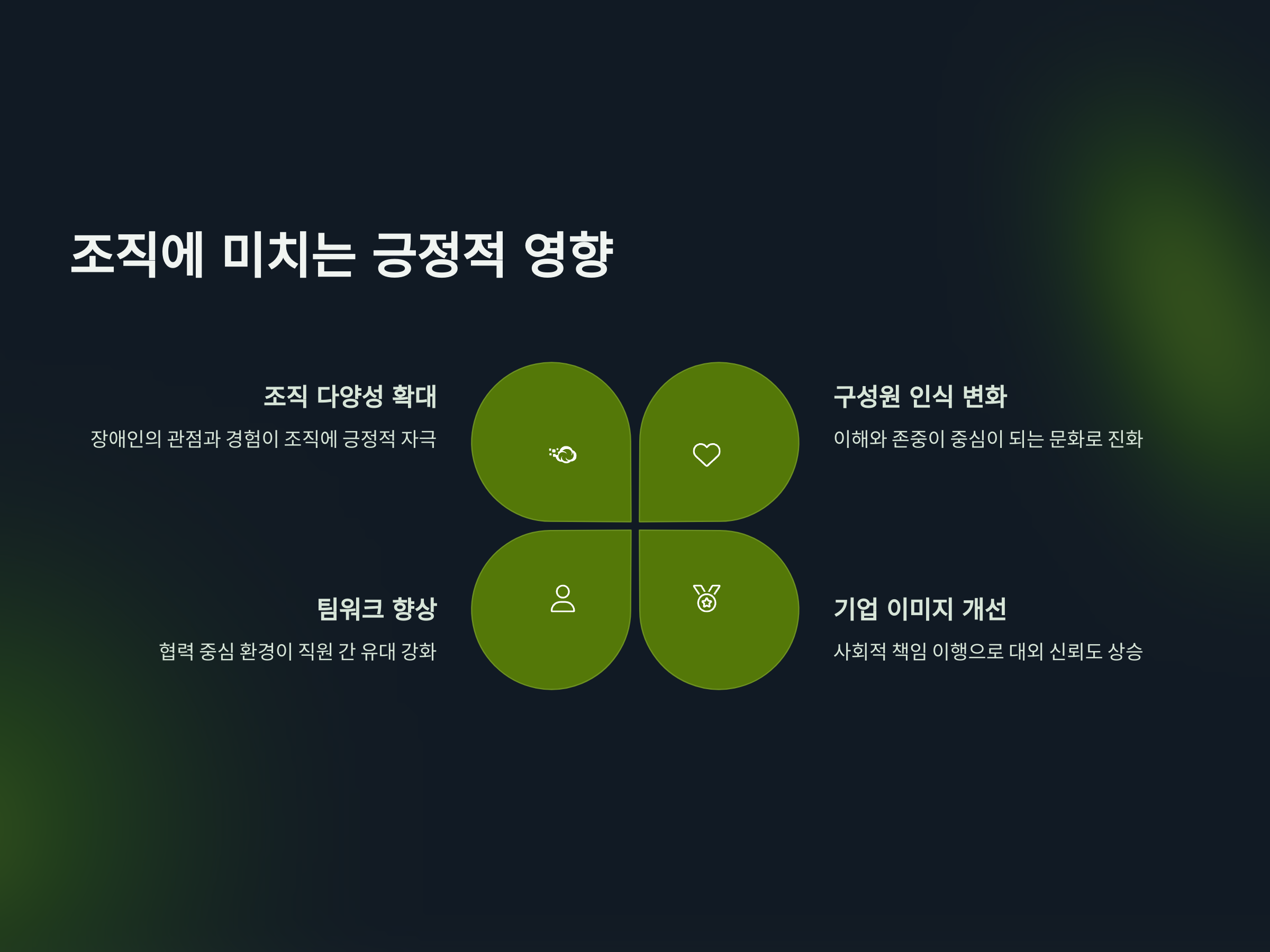 | 조직 다양성 확대 | 장애인의 관점과 경험이 조직에 긍정적 자극을 줌 |