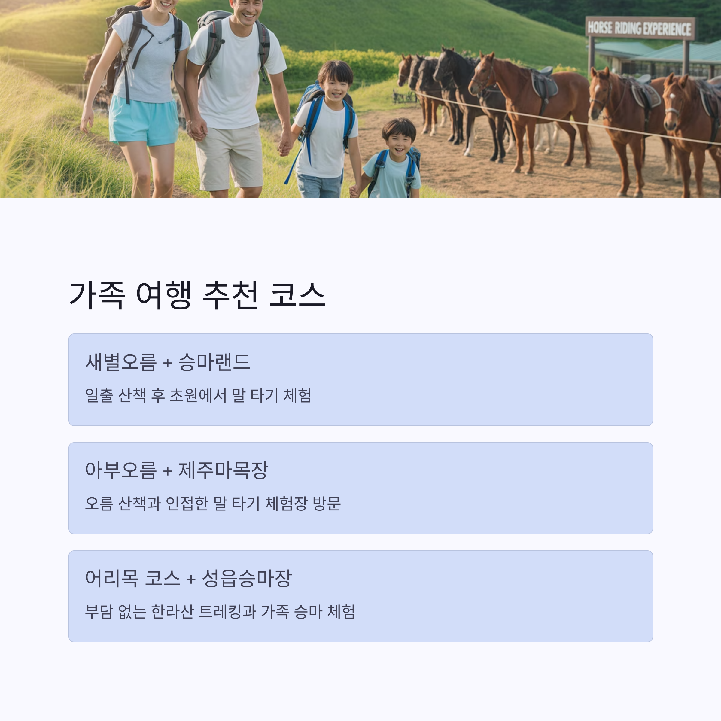 | 성읍승마장 | 표선면 | 가족 체험, 어린이 전용 마차 |
