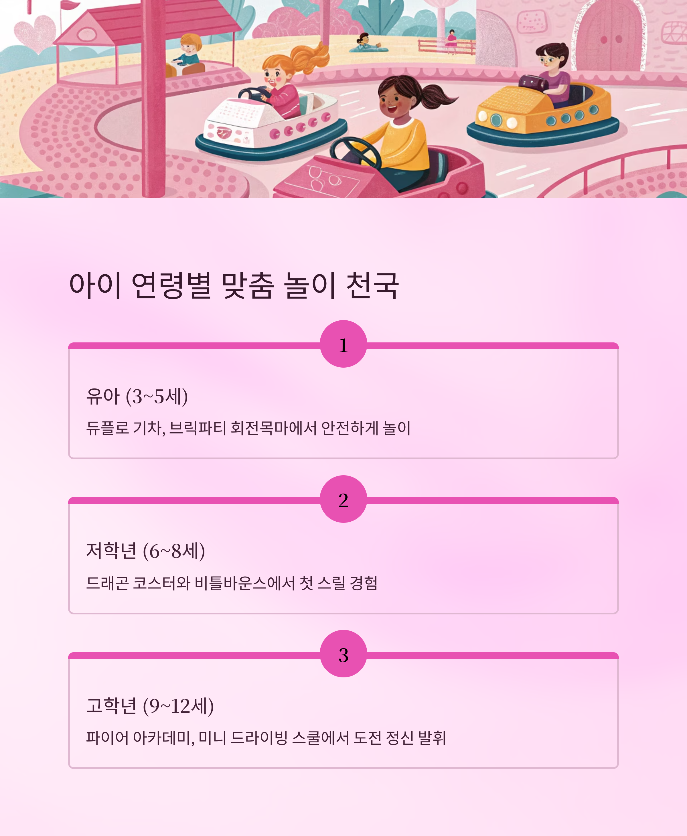 연령별 맞춤 놀이기구, 창의력 체험존, 실외 놀이시설이 어우러져