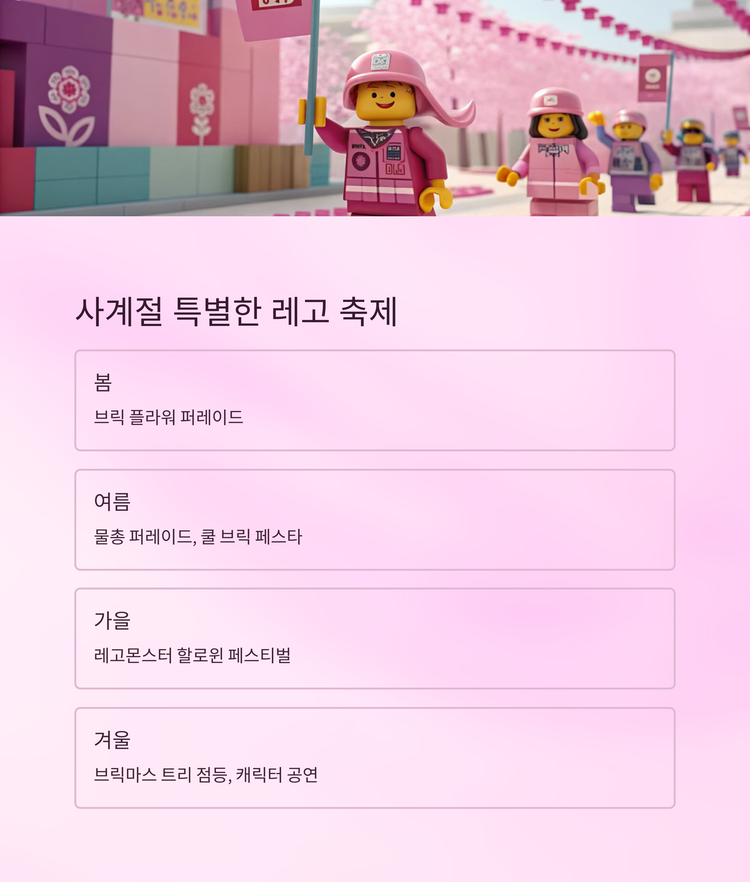 봄에는 브릭 블로썸, 여름에는 워터파크 스타일 이벤트,