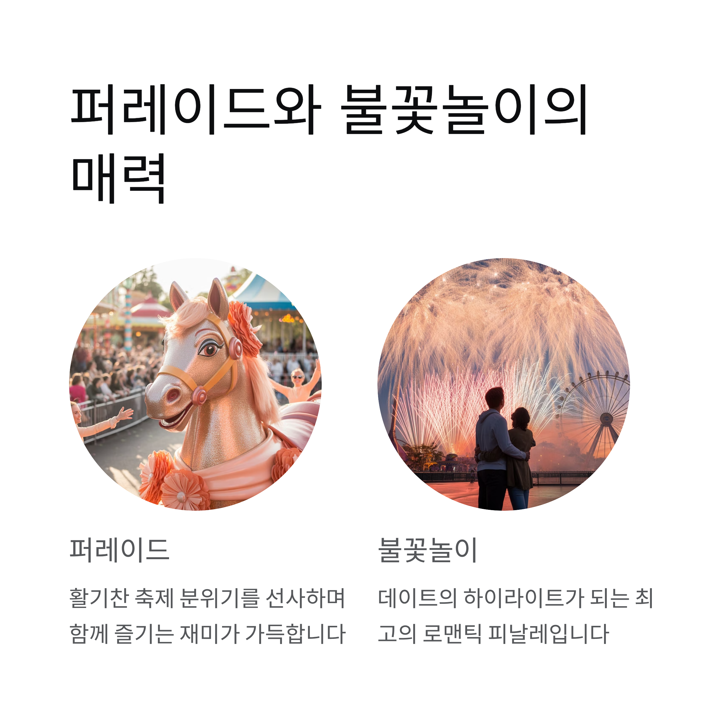 퍼레이드는 활기찬 축제 분위기를 선사하고, 불꽃놀이는 데이트의 하이라이트가 됩니다.
