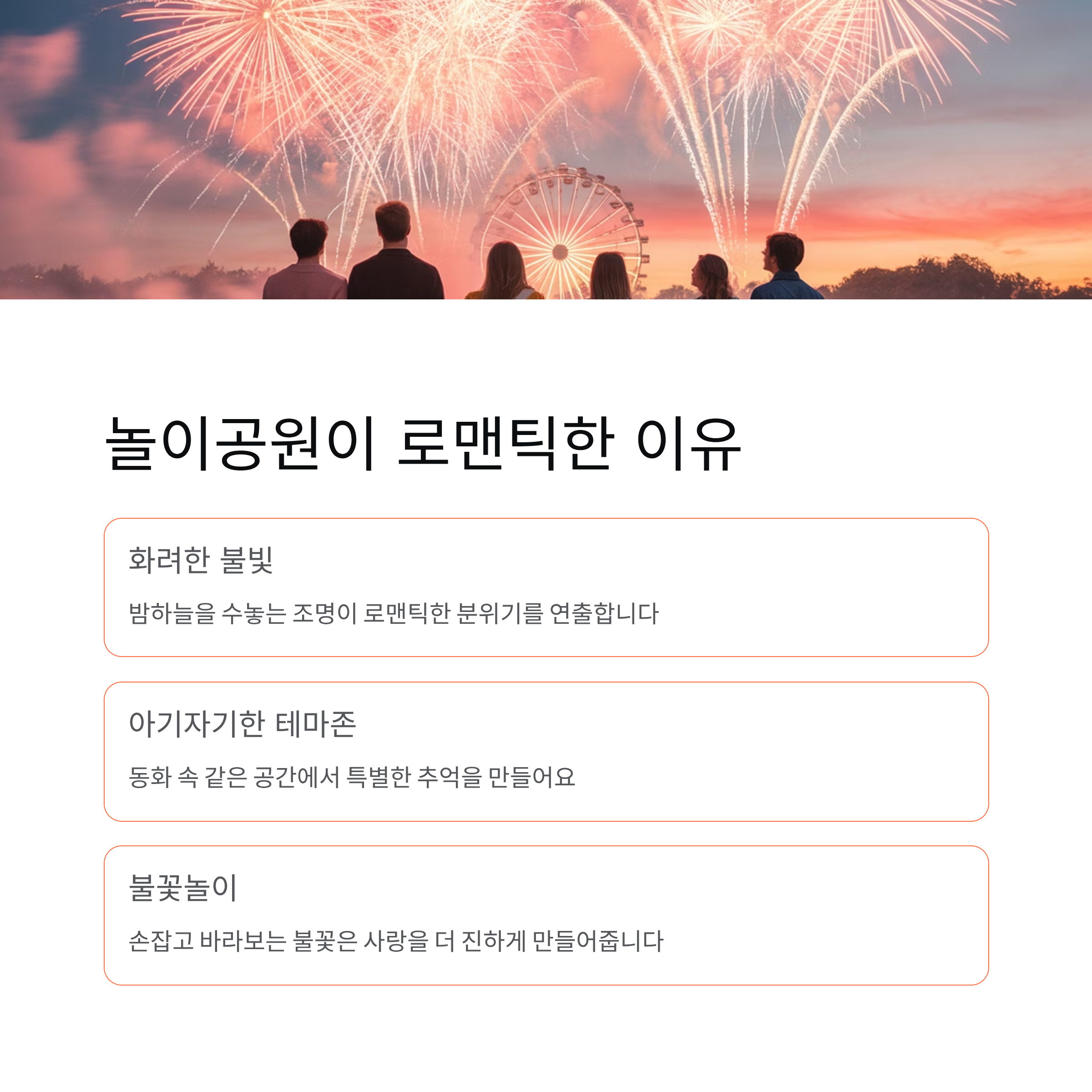 놀이공원은 단순히 즐거움을 주는 공간을 넘어 로맨틱한 추억을 만들 수 있는 데이트 명소이기도 합니다.