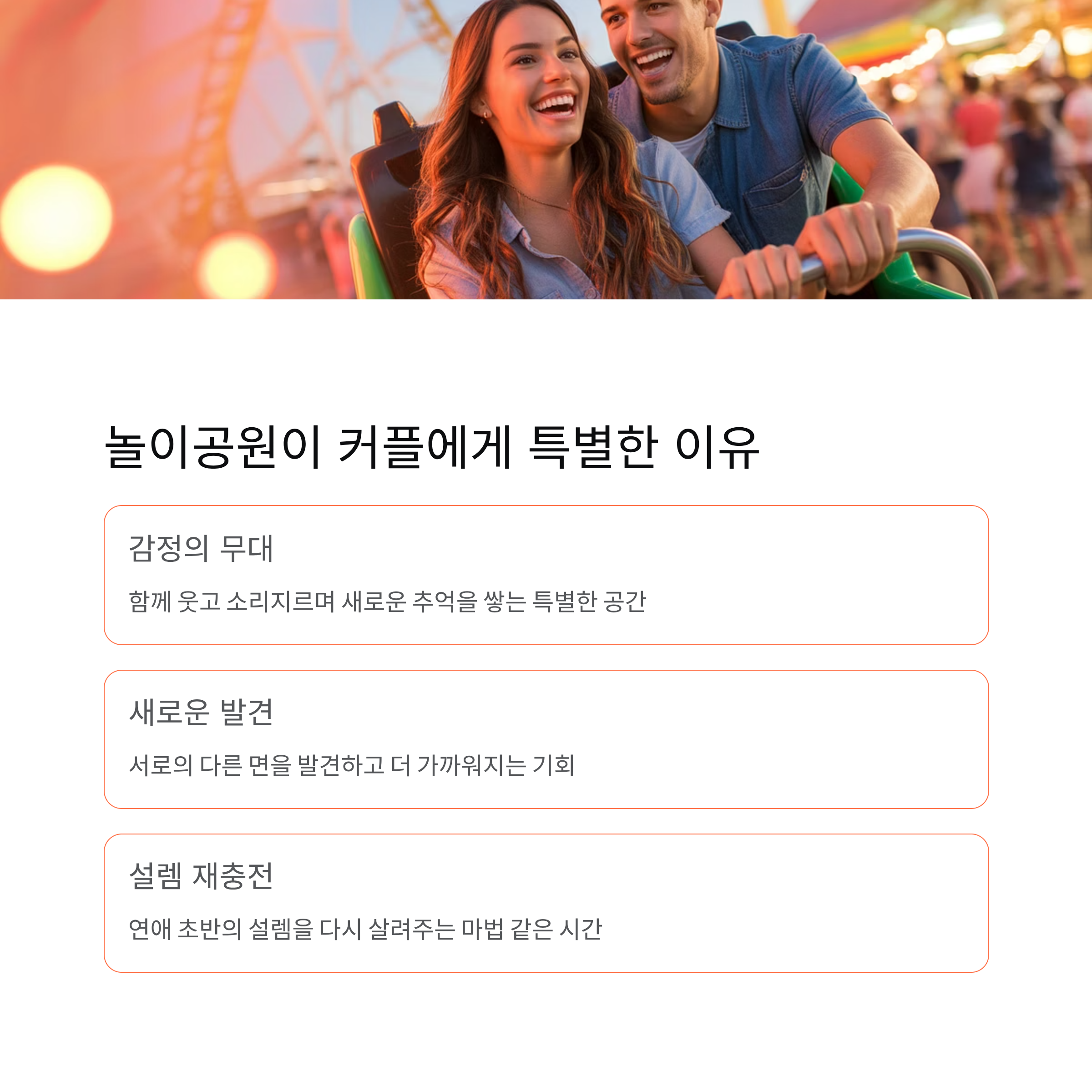 놀이공원은 단순히 놀기 위한 공간이 아니라, 관계가 한층 깊어지는 ‘감정의 무대’예요.