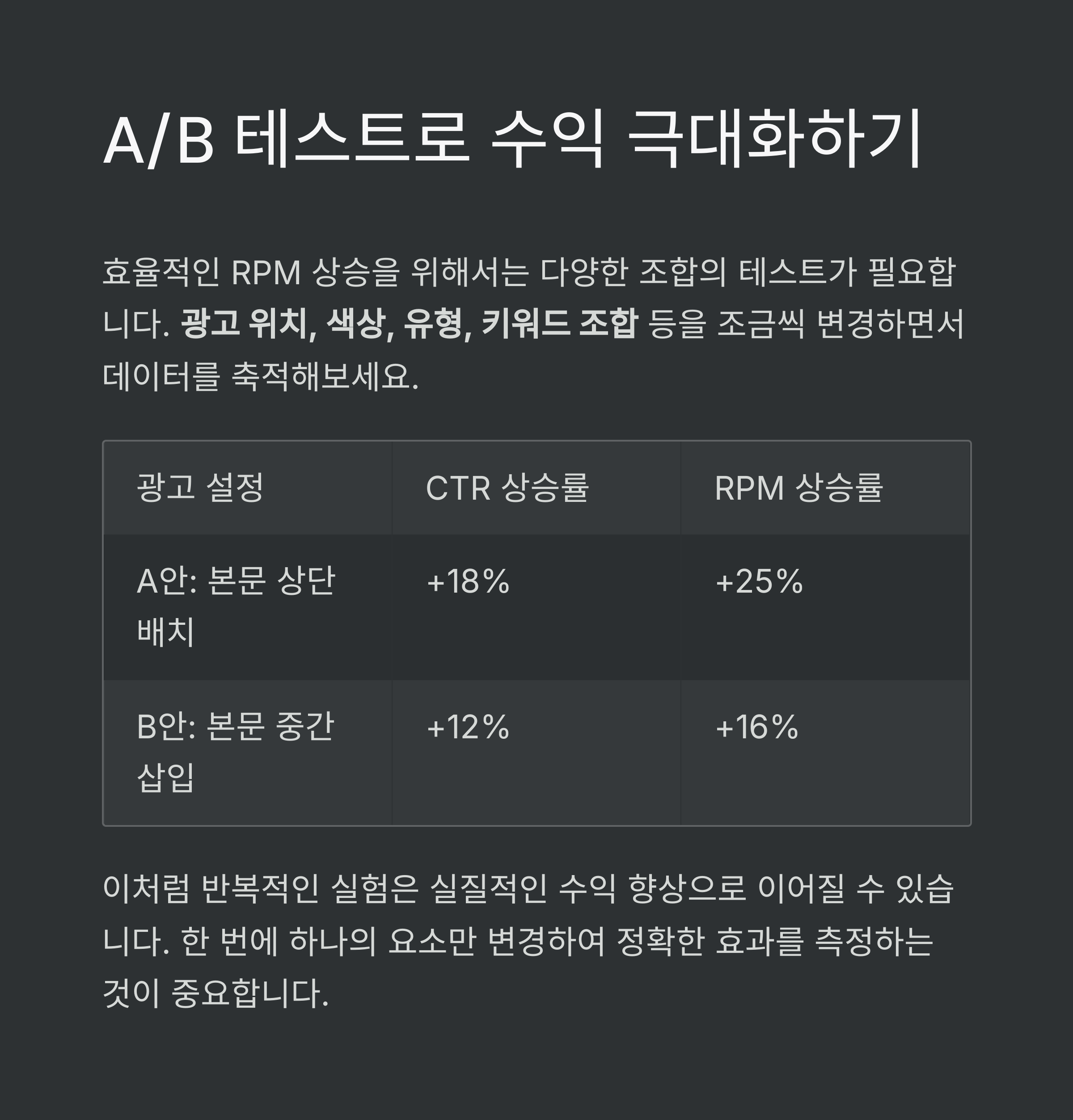 | B안: 본문 중간 삽입 | +12% | +16% |