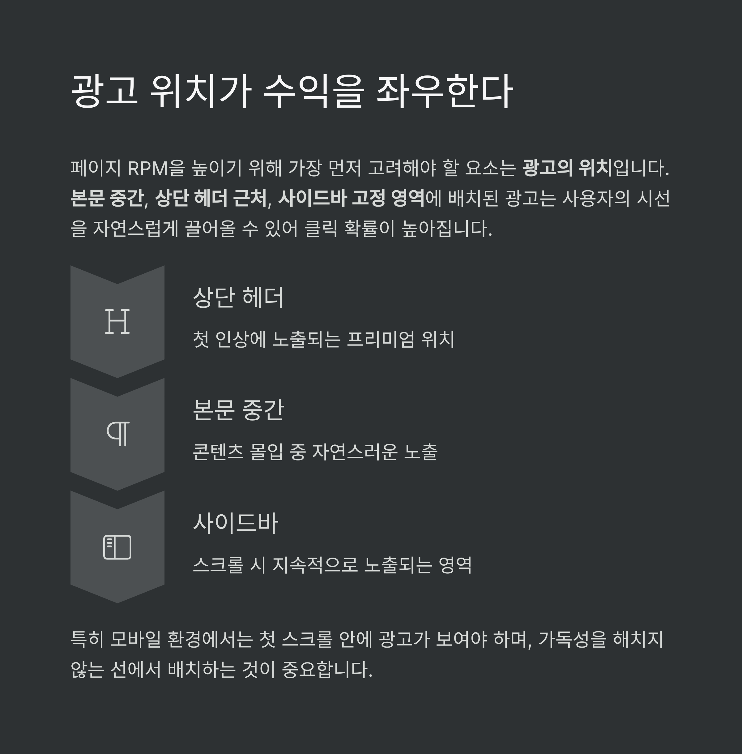 페이지 RPM을 높이기 위해 가장 먼저 고려해야 할 요소는 광고의 위치입니다.