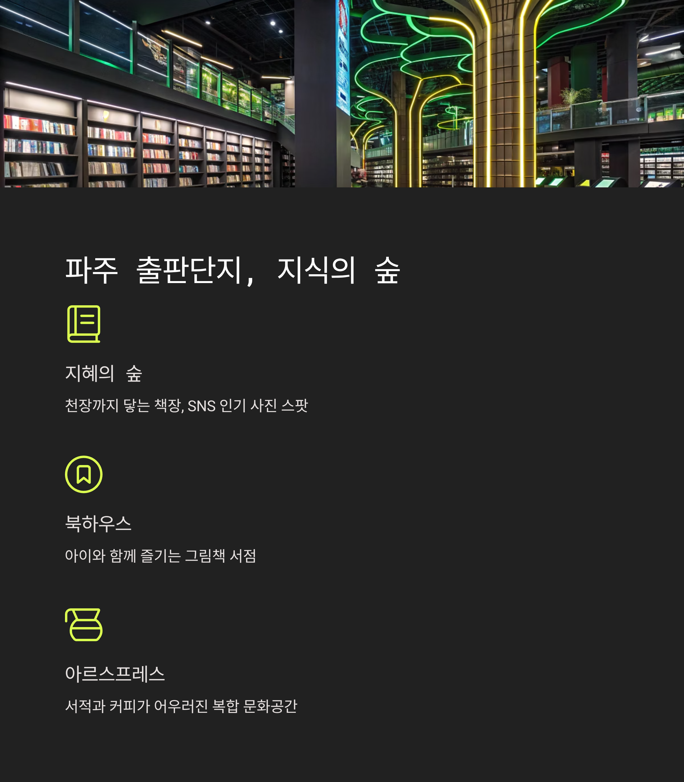 출판단지는 책을 중심으로 한 복합 문화 공간으로,