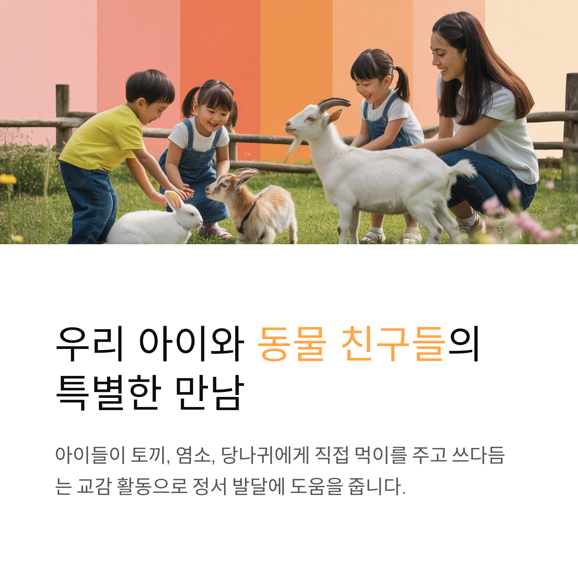 | 동물 체험 | 토끼, 염소, 당나귀 먹이 주기 |