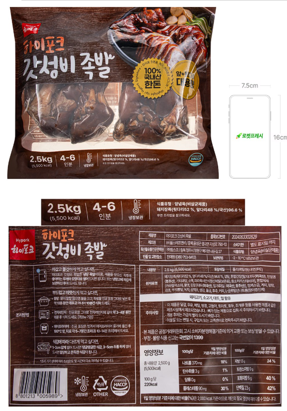 먼저 가장 눈에 띄는 건 대용량 2.5kg 구성입니다. 가격은 약 **27,800원 수준(100g당 약 1,112원)**이라서 족발 전문점 가격과 비교하면 꽤 합리적인 편이에요. 보통 족발집에서 중짜 하나 시키면 3~4만 원대인데, 이 제품은 여러 번 나눠 먹을 수 있는 양이라 가족이나 모임용으로도 충분합니다.