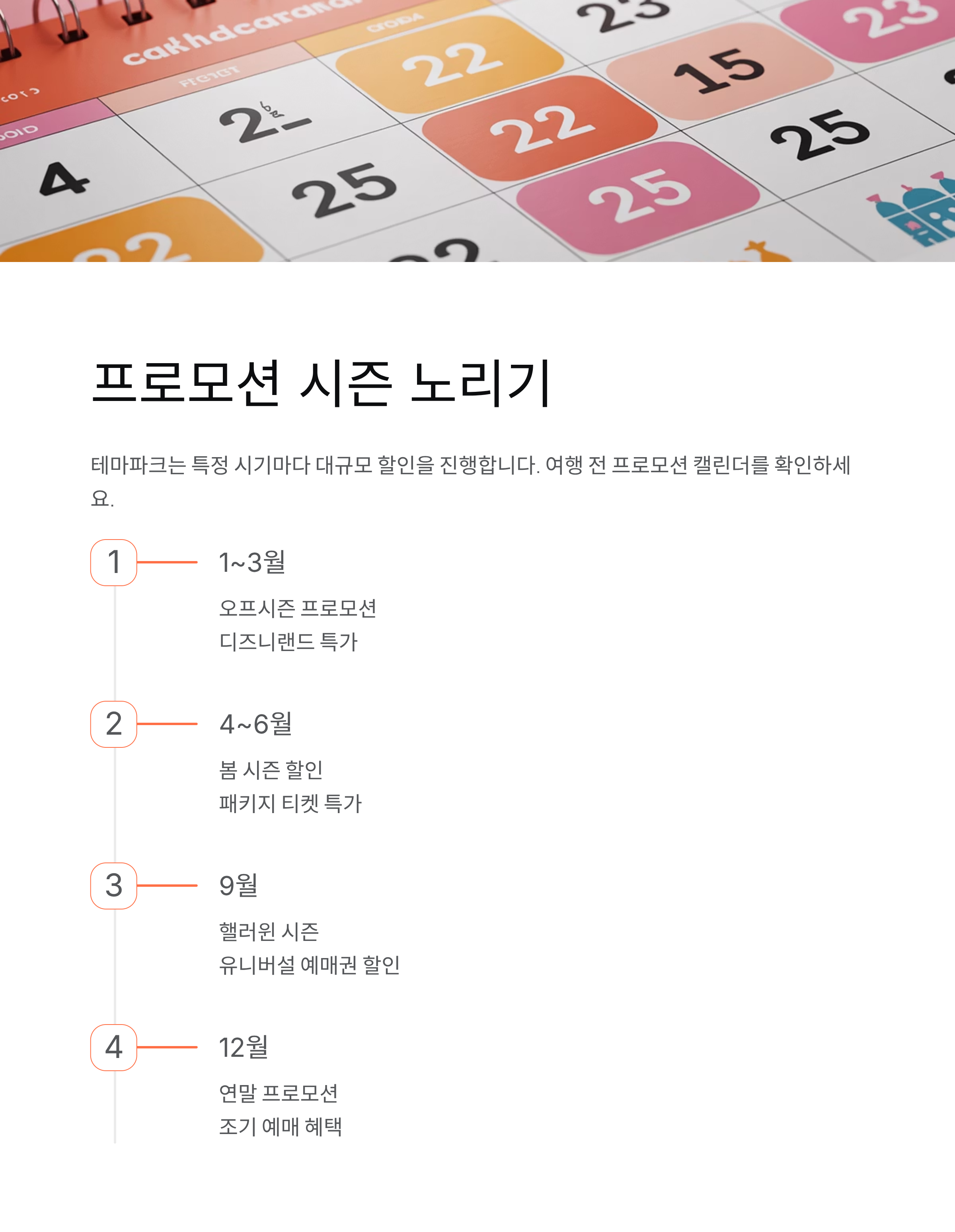 대부분의 해외 놀이공원은 특정 시즌마다 대규모 할인 행사를 진행합니다.