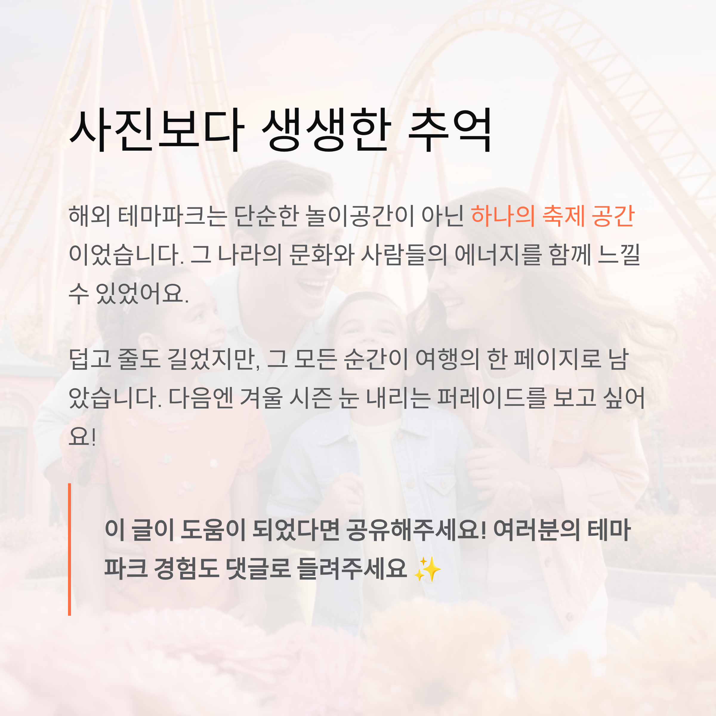 해외 테마파크는 단순히 놀이기구를 타는 공간이 아니었습니다.