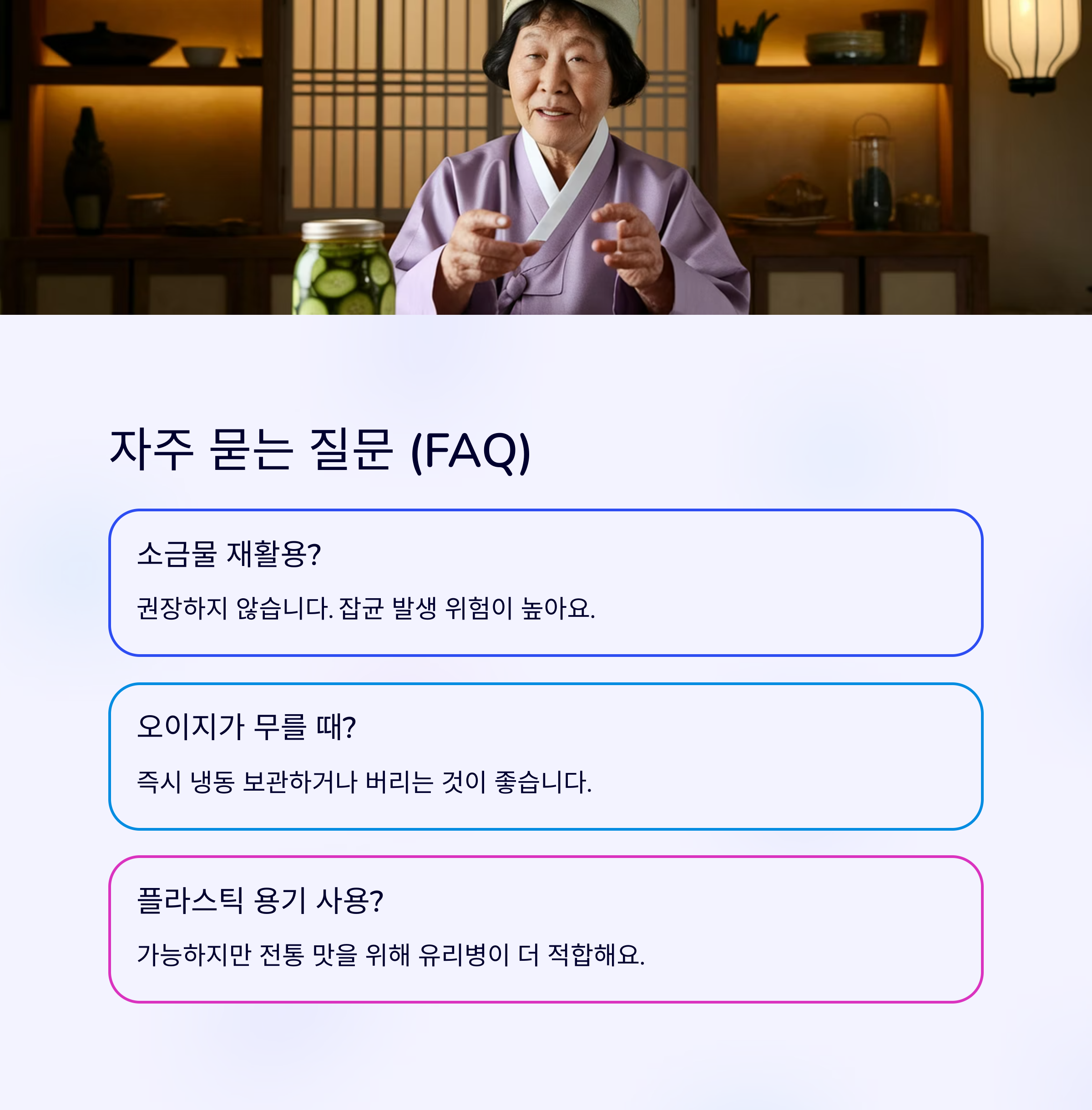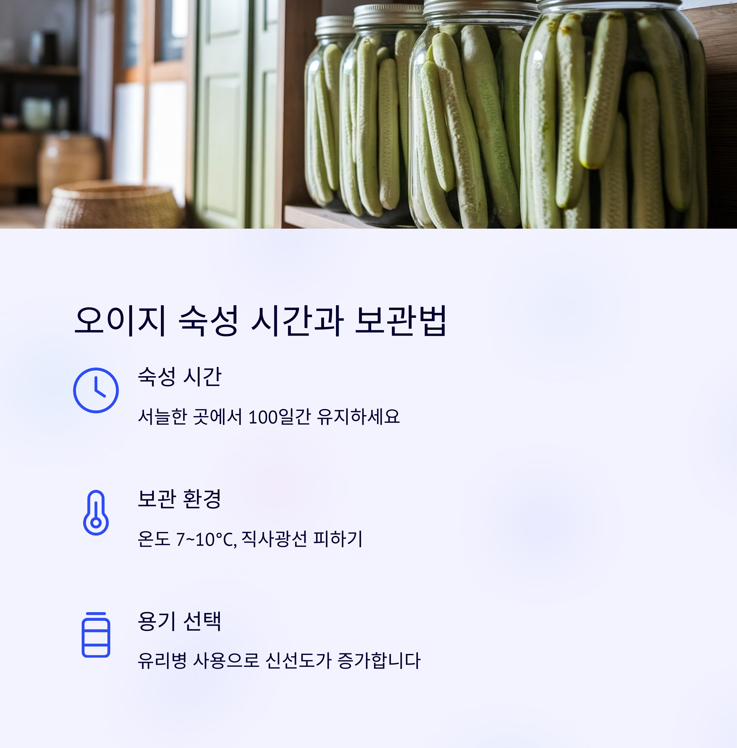 | 오이지 보관 | 절임 비율 | 맛내기 팁 |