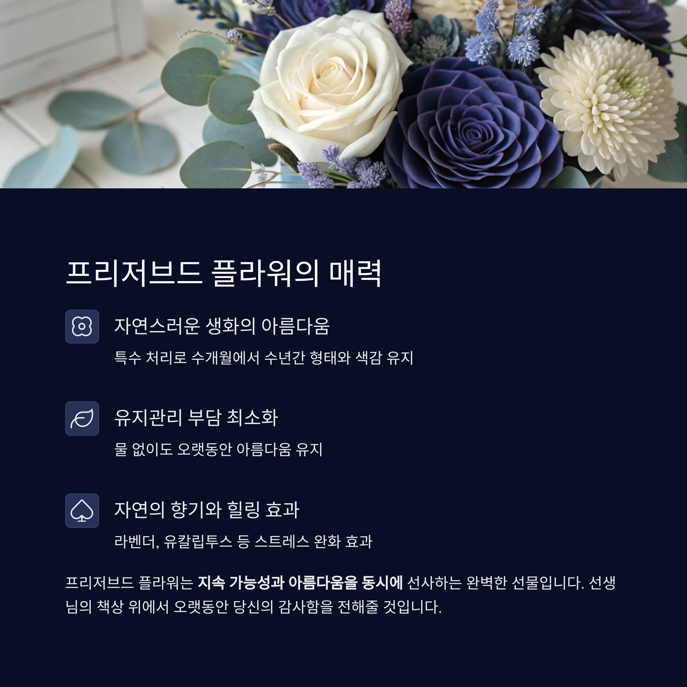#스승의날꽃선물 #프리저브드플라워 #감사카드 #에코선물 #맞춤형꽃바구니 #향기있는선물
