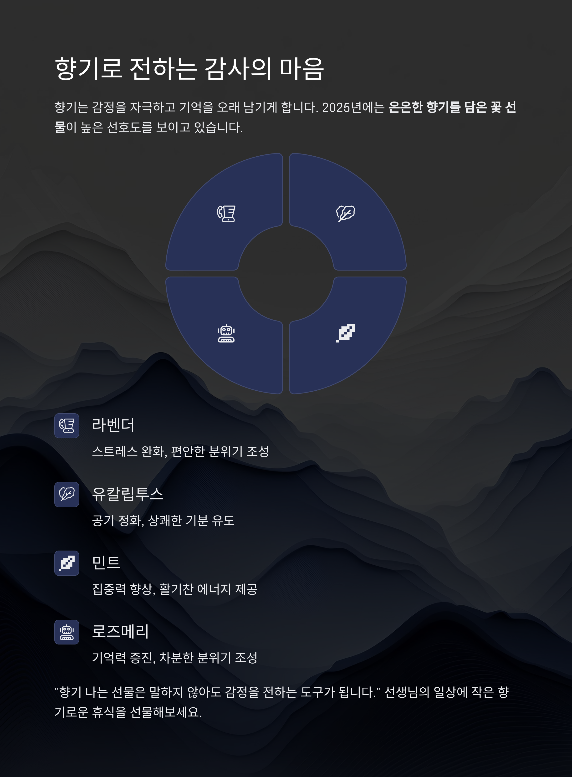 “향기 나는 선물은 말하지 않아도 감정을 전하는 도구가 됩니다.”